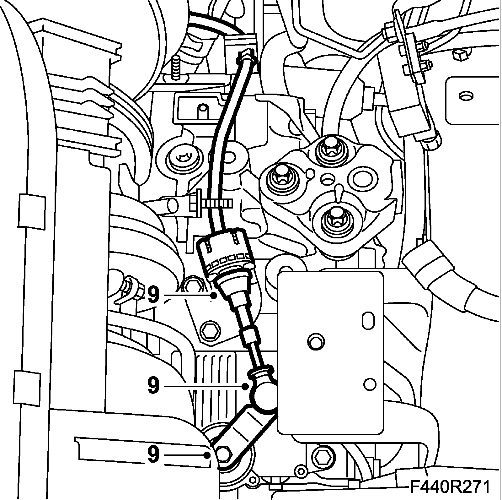9. Fit the lever and gear cable. Put the gear selector in position P.