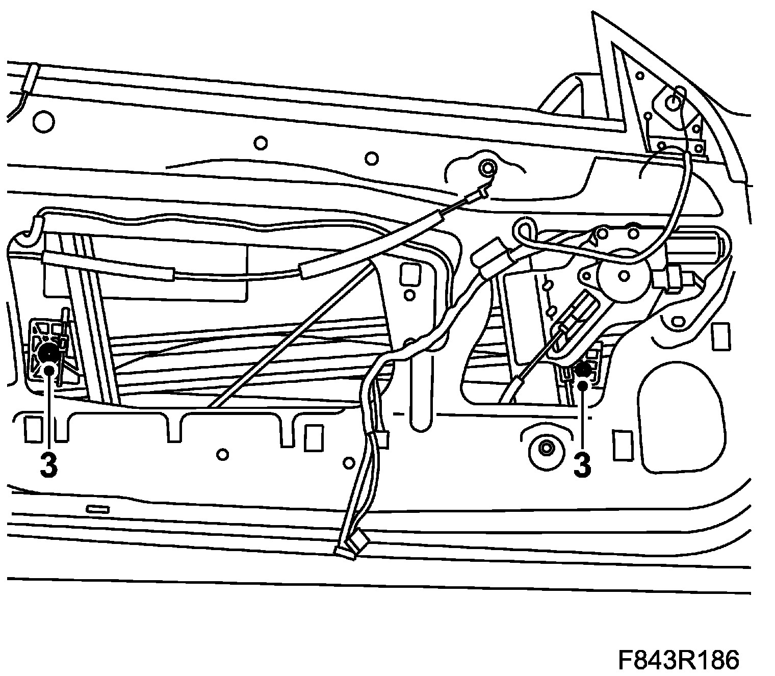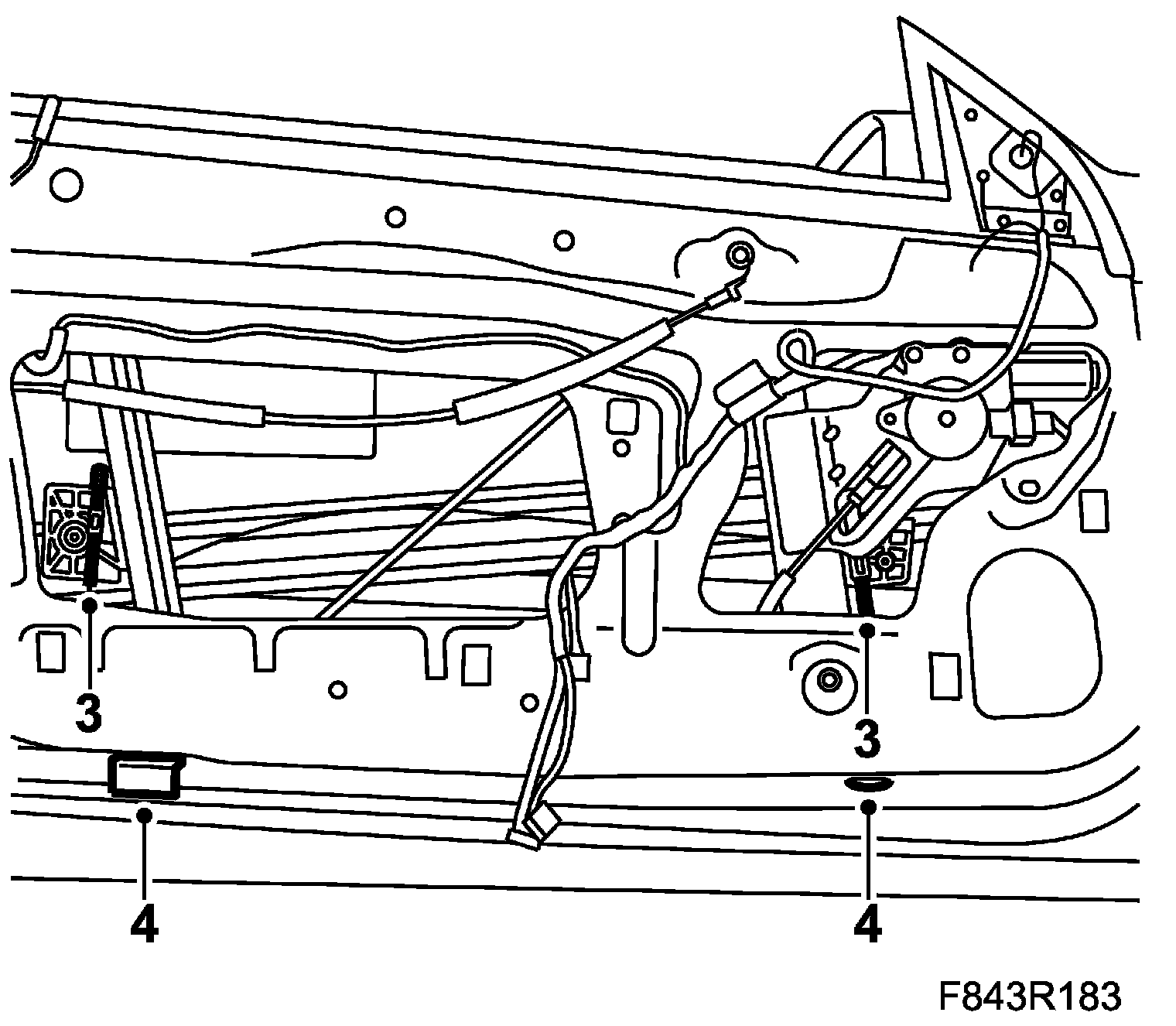 6. Adjust the side window by moving the complete window lift with window. Tighten the nuts.