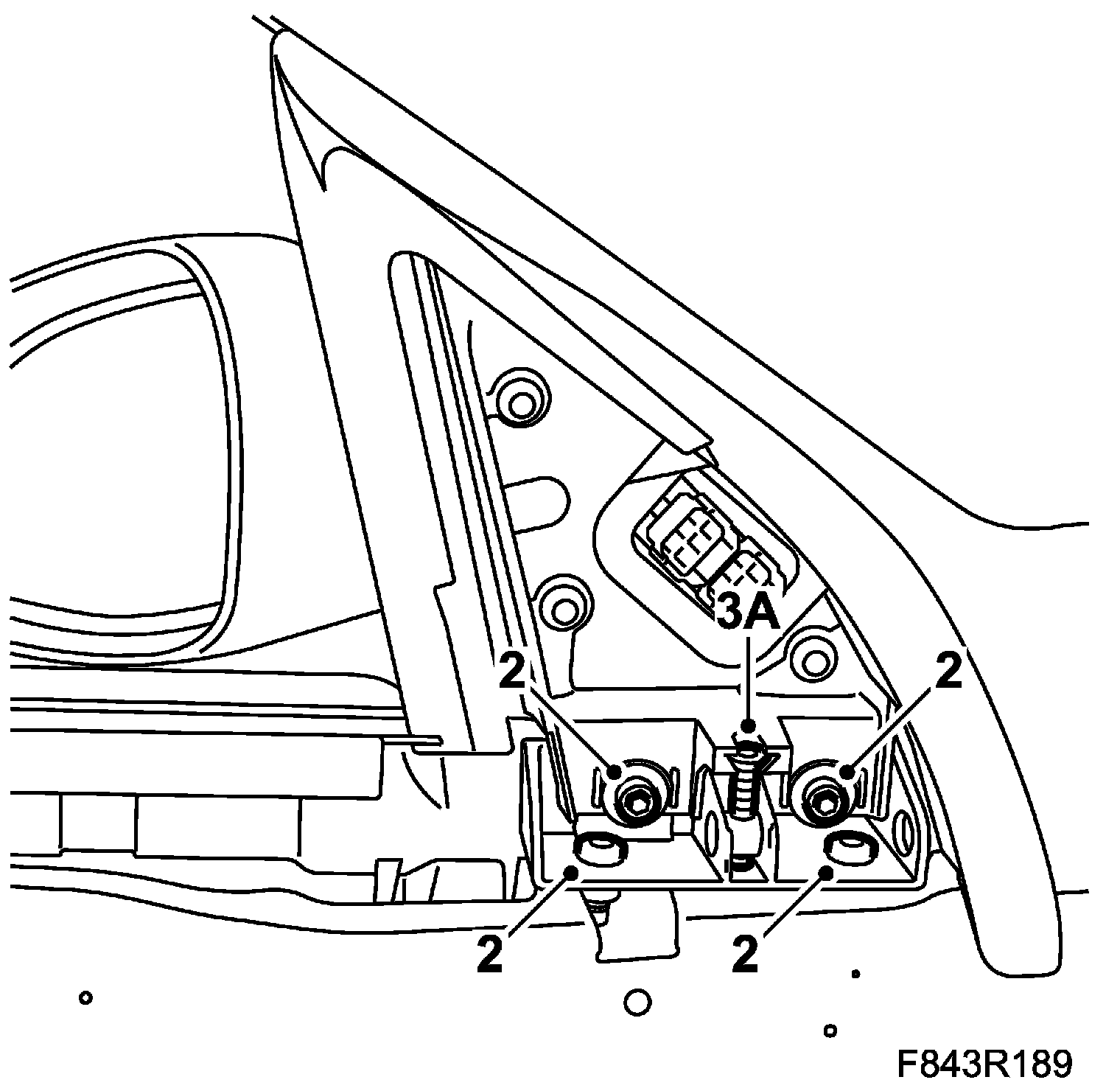 3. Before adjustment is started the door mirror base screws must be unscrewed.