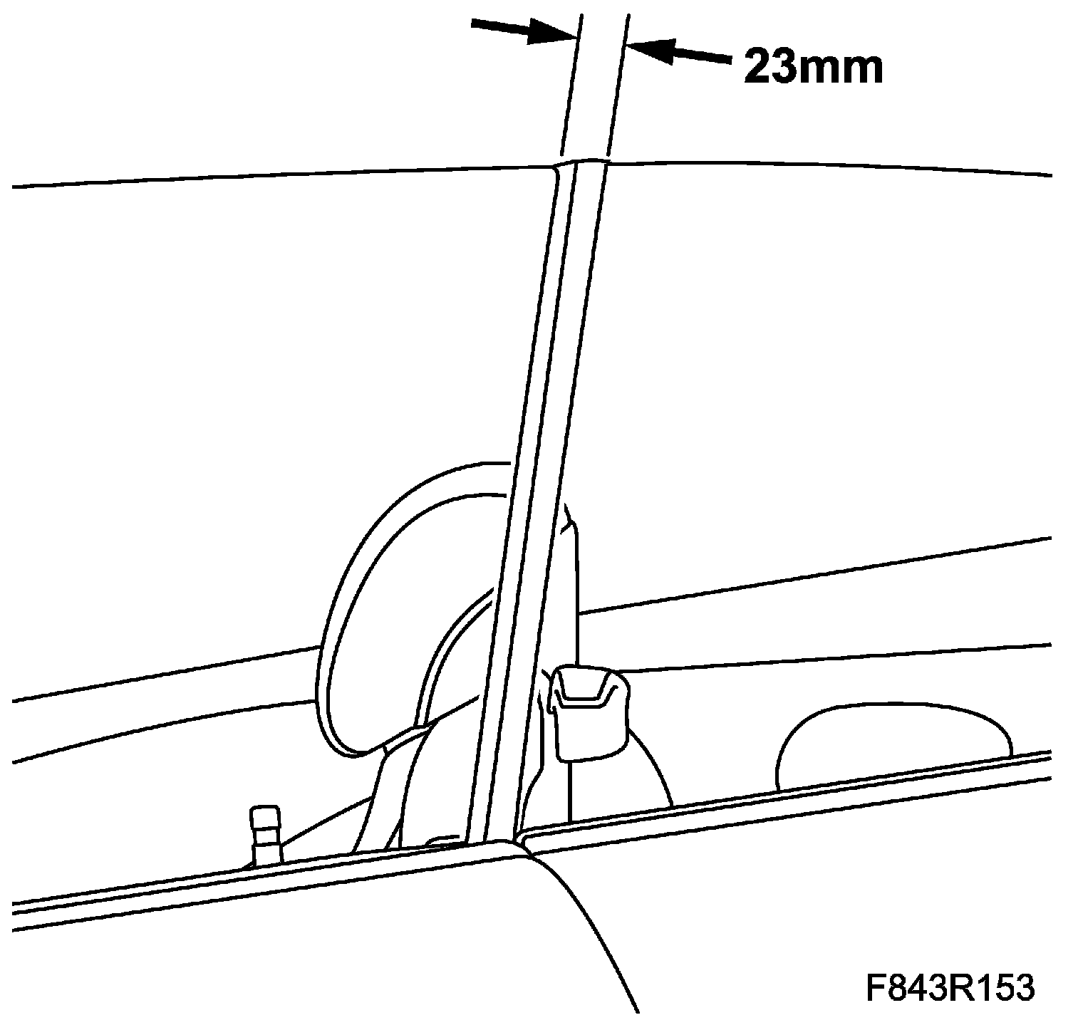 1. Check the side window against the door window. The distance between the rear edge of the side window sealing moulding and the rear edge of the door window must be 23±1 mm. The distance should be the same all along the length.