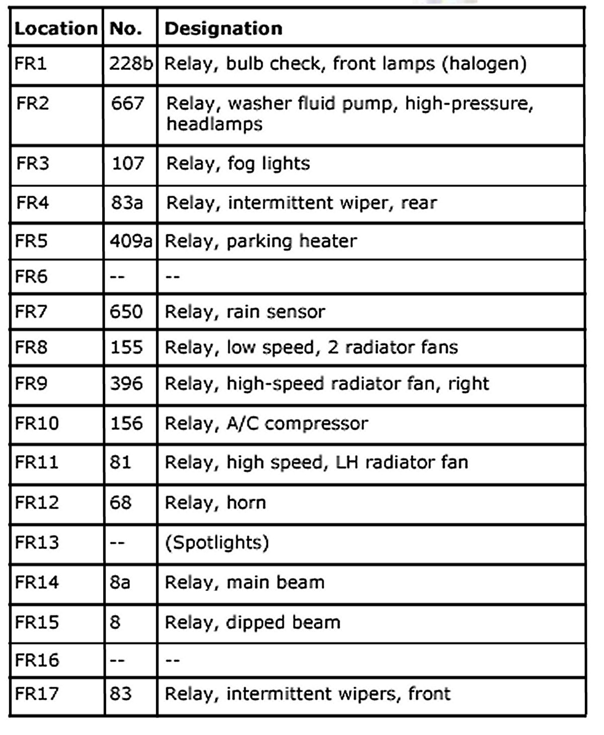 Relays FR1 - FR17: