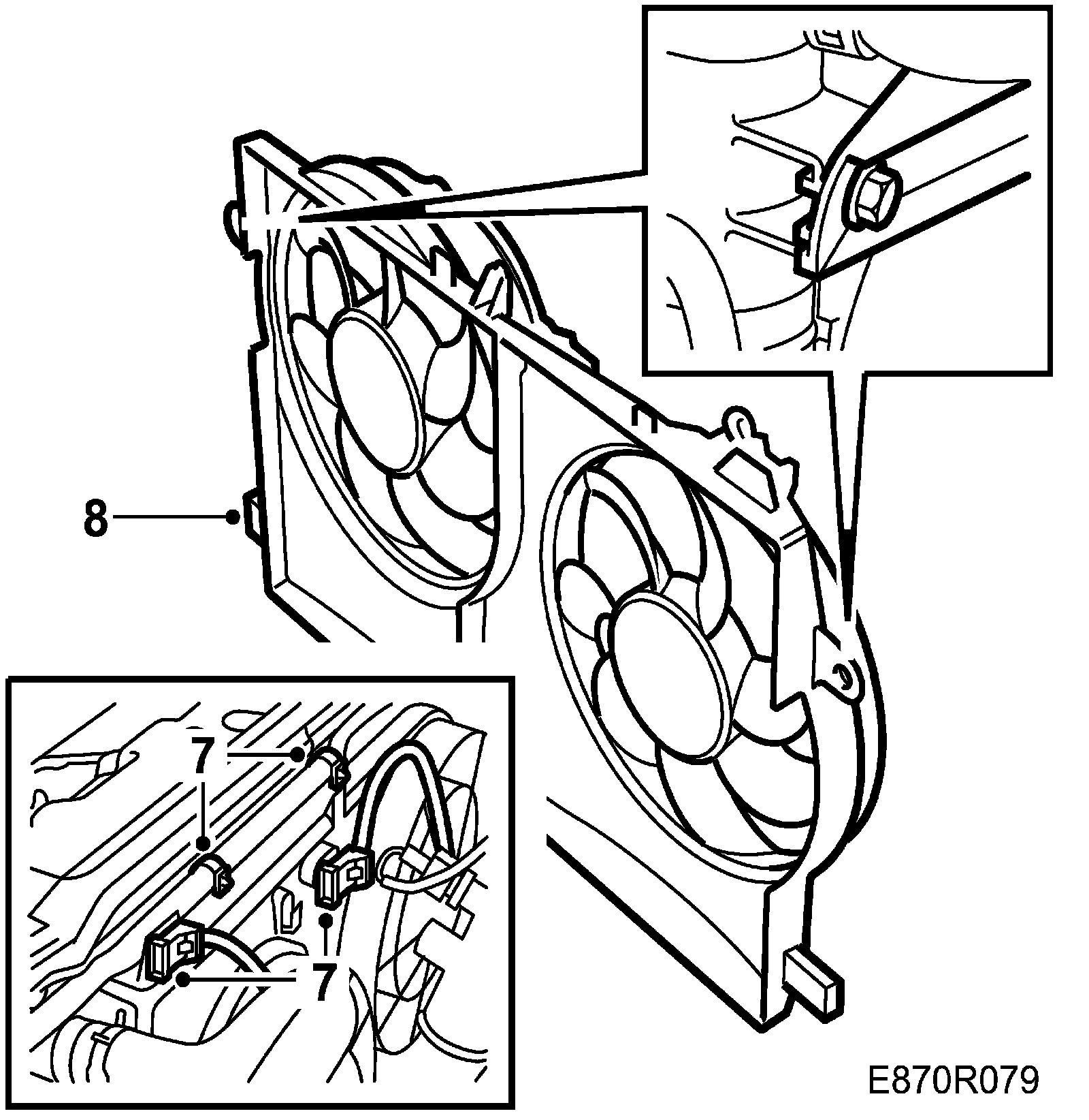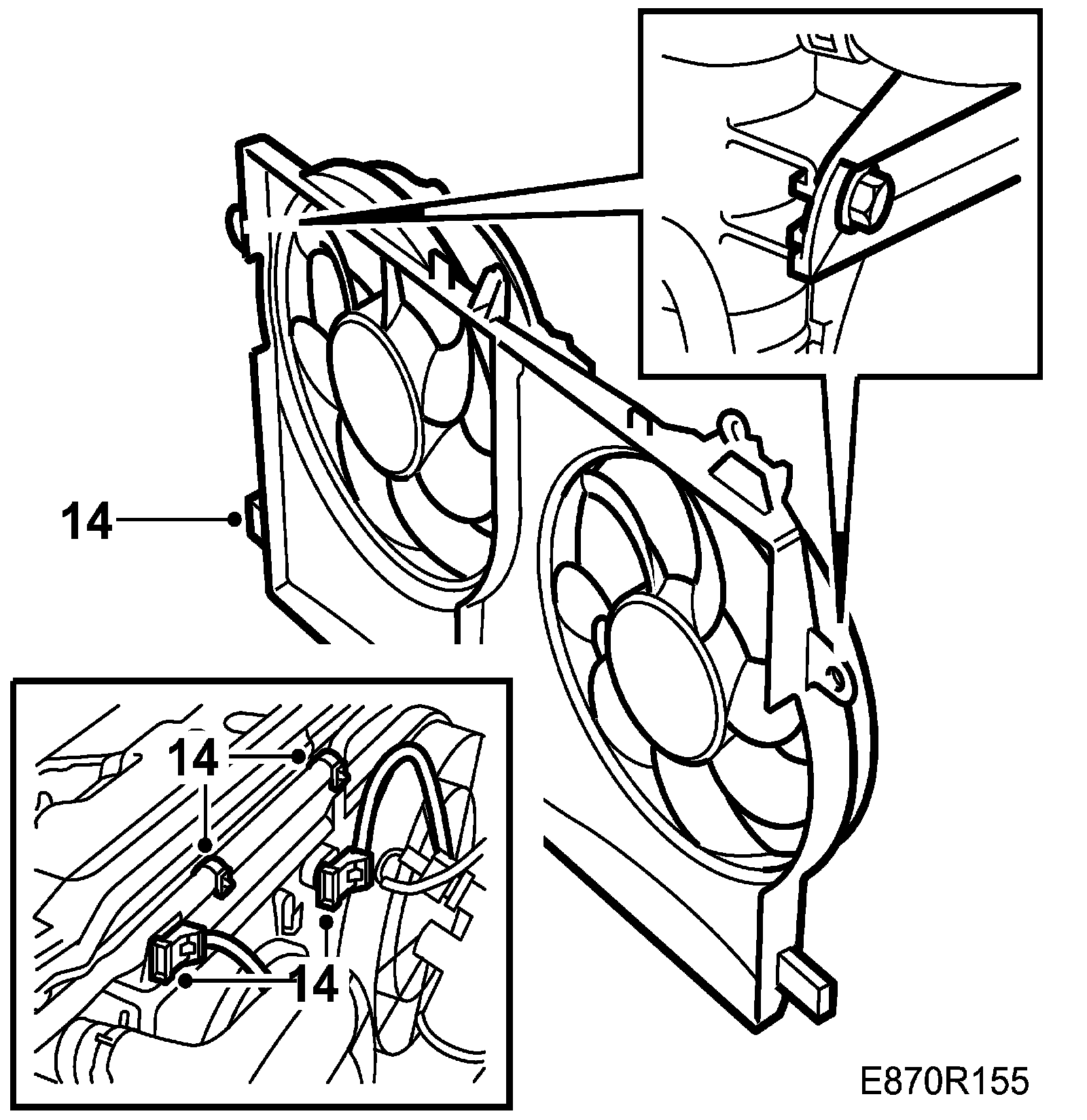 Replace the hose clamp and connect the connectors to the radiator fans on the fan cowling.