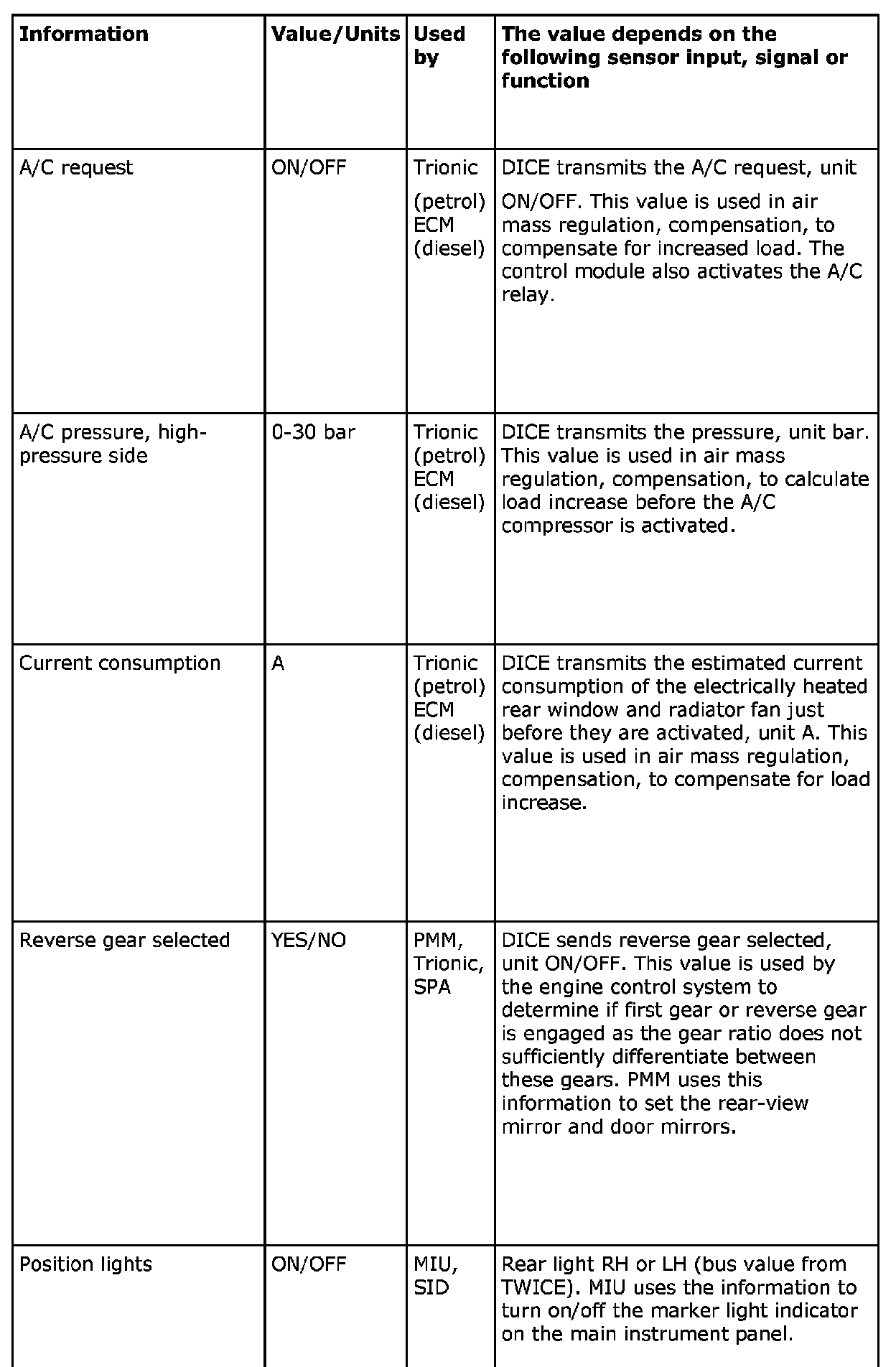 For a further description of the car's bus system, see System overview, bus and diagnostics communication, petrol.
