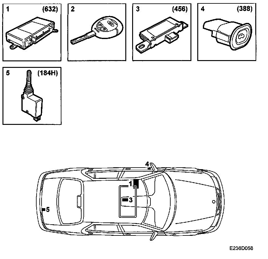 3. Antenna, remote control, central locking system (456)