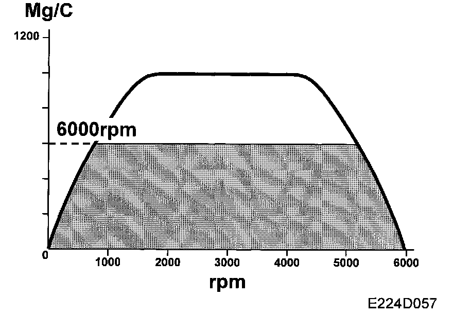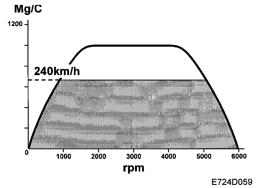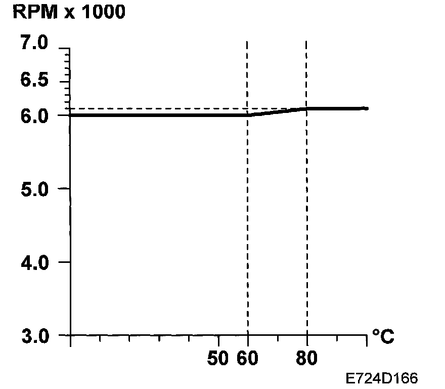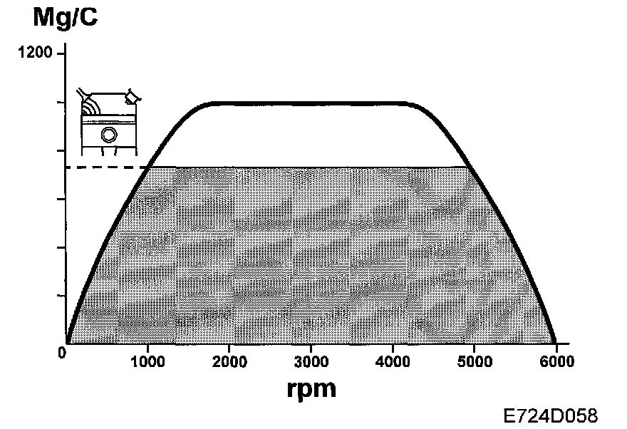 When the engine speed reaches 6000 rpm and the coolant temperature falls below 60 degree C, the engine torque is limited due to the fact that the maximum allowed air mass/combustion is limited. If the coolant temperature is above 80 degree C a further 100 rpm is allowed, i.e. the maximum allowed air mass/combustion in this case is limited at 6100 rpm.