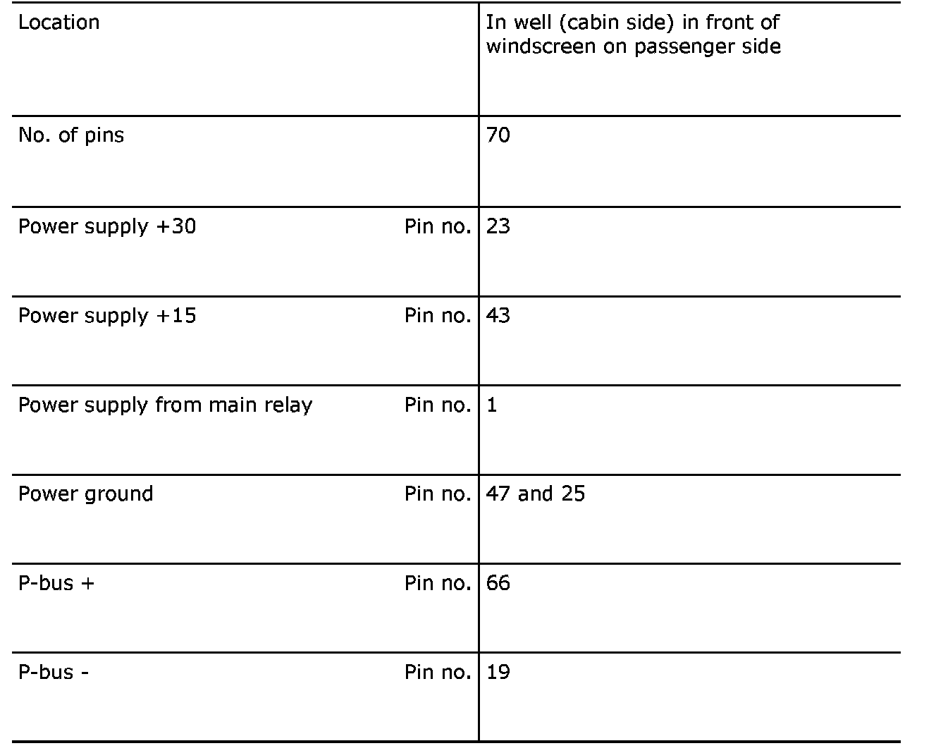 Pinout Values and Diagnostic Parameters