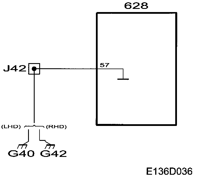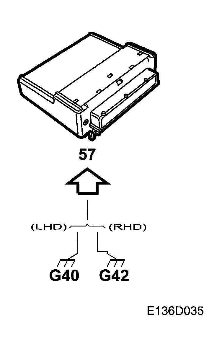 Control module grounded at grounding point G40 (LHD) and G42 (RHD) via pin 57.