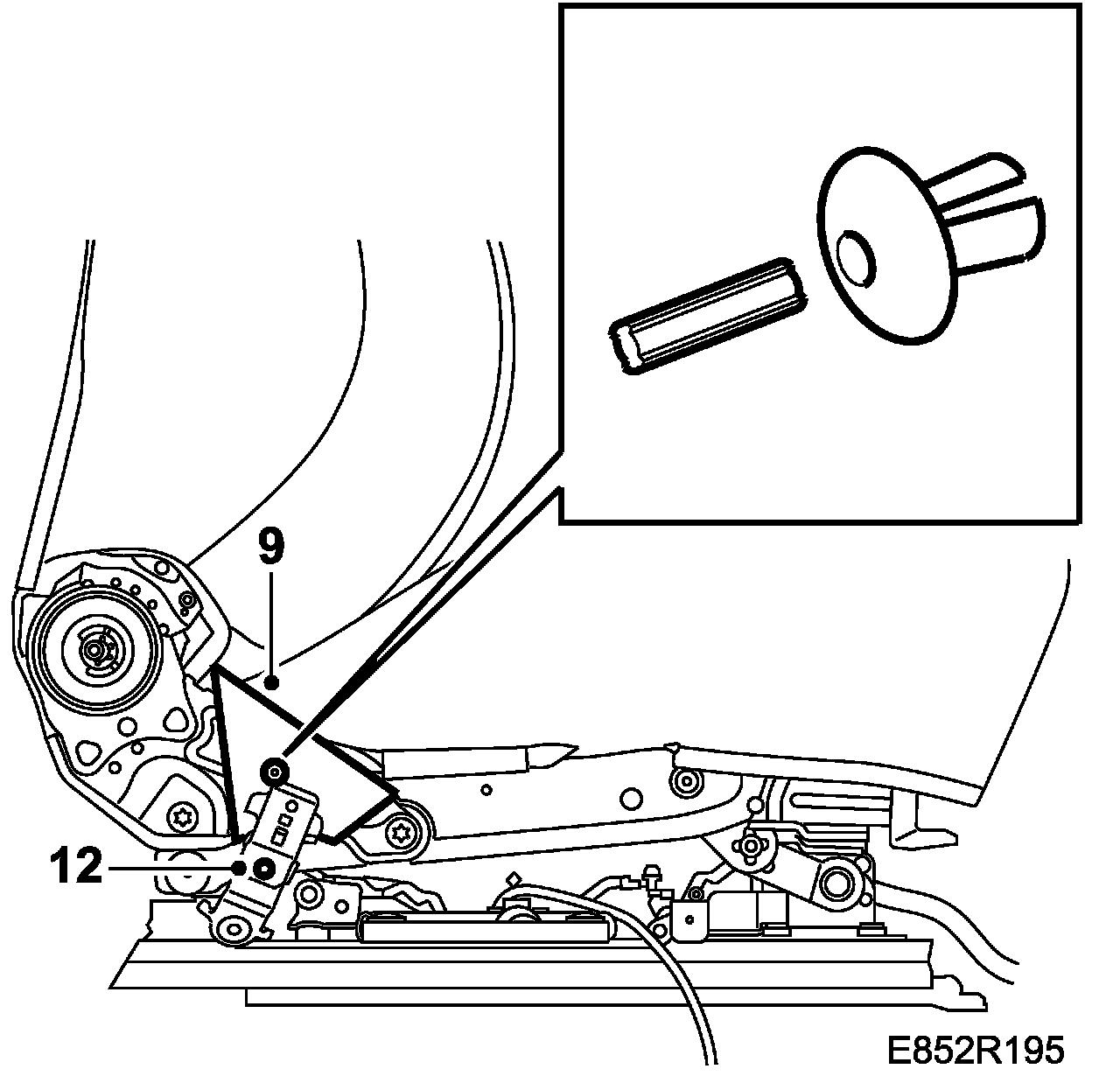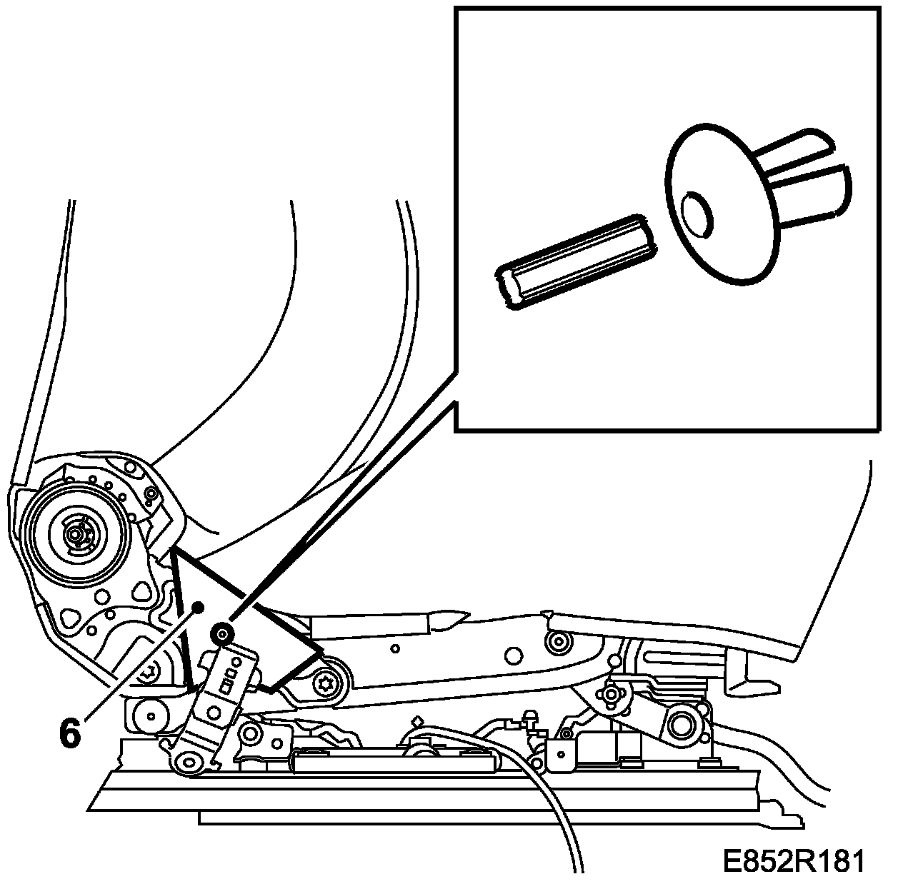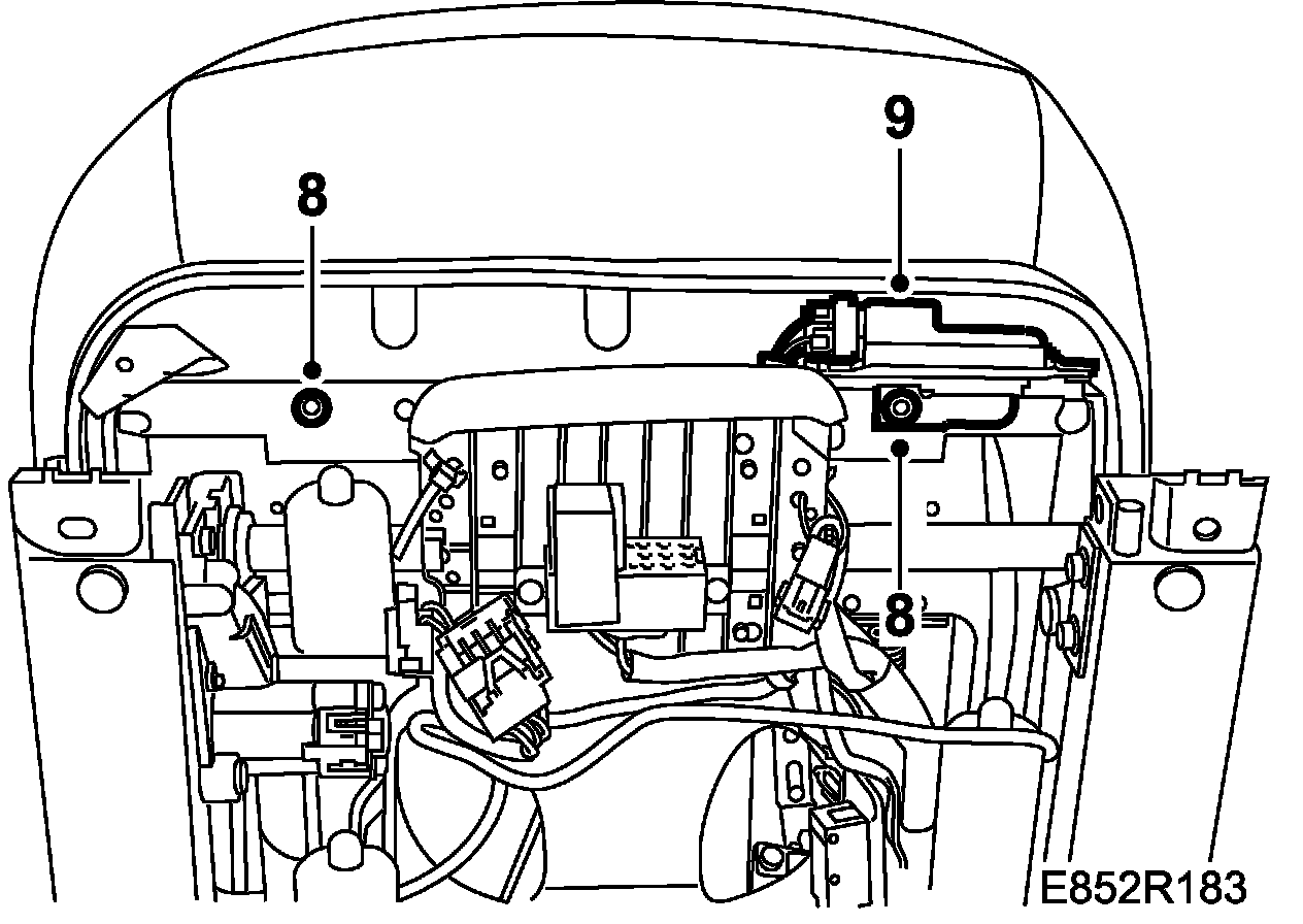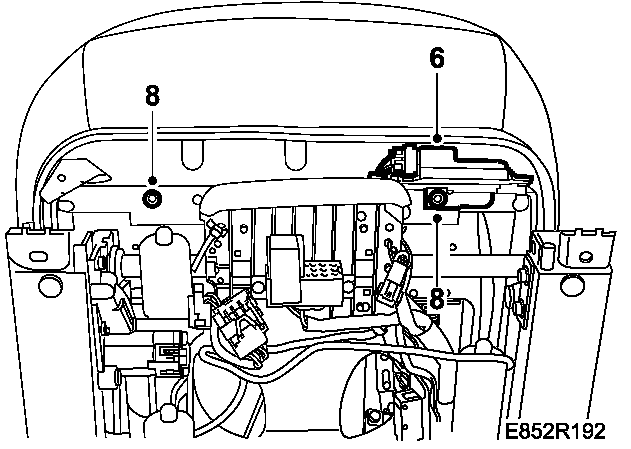 Power seat: The front bolt has a protective cover on its tip. Keep this cover safe as it must be fitted on the bolt to prevent chafing of the electrical leads.