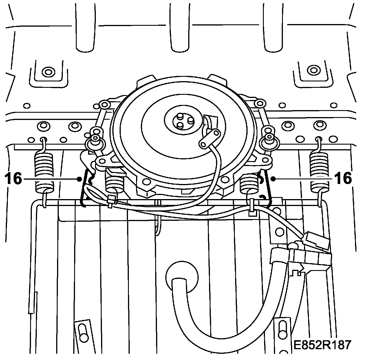 16. Remove the hooks and lift away the seat base.