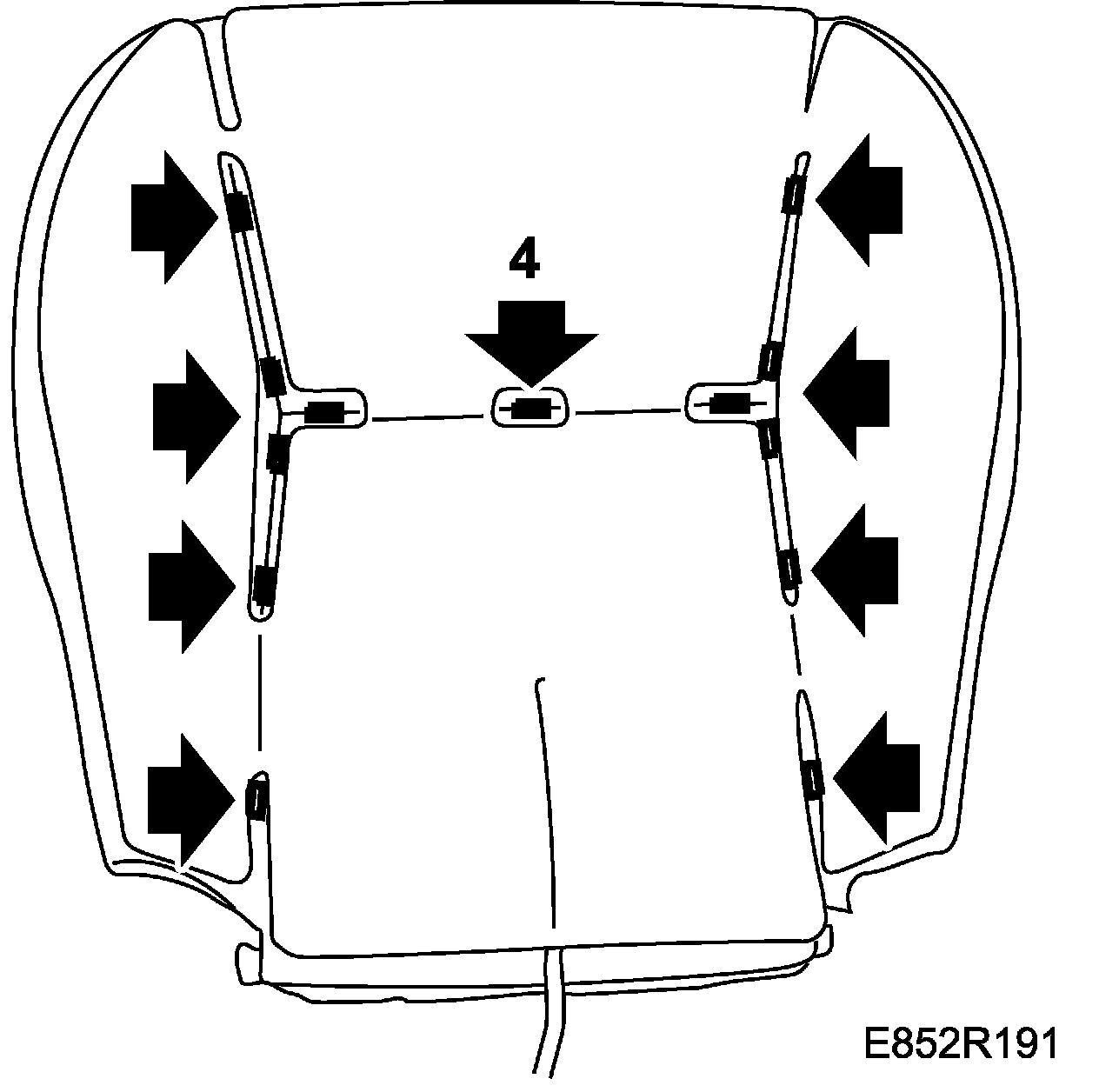 11. Fasten the rubber cord on the bottom of the backrest upholstery under the seat cushion.