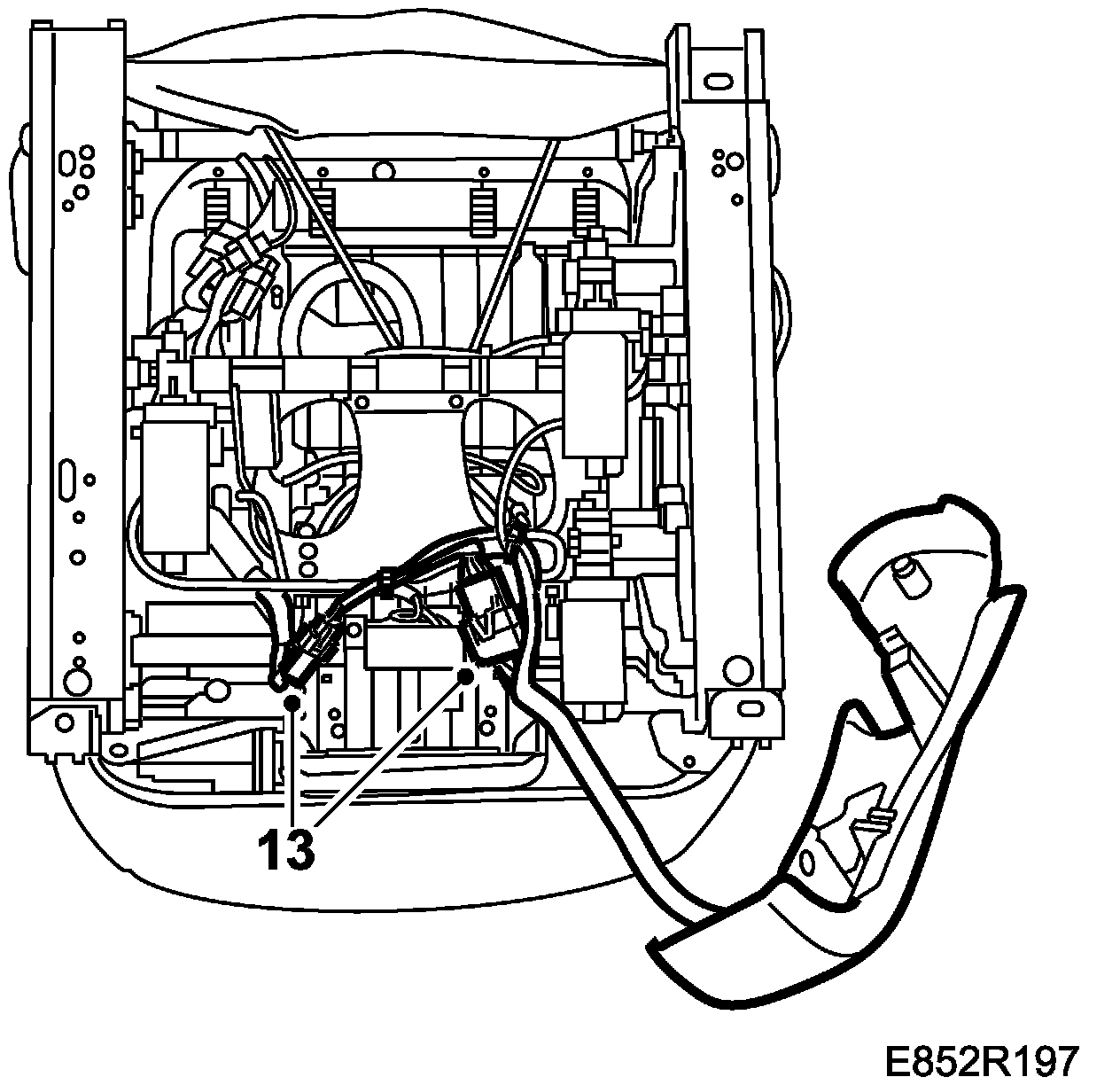 13. On electrically adjustable front seats, first plug in the connector to the switch and to the memory buttons, if any, on the upper seat cowl.