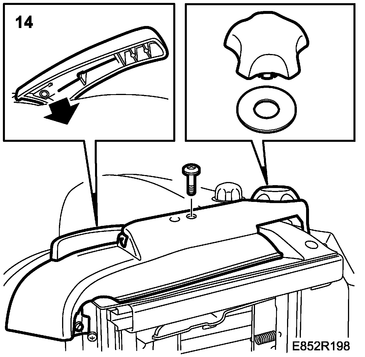 14. Refit the upper seat cowl by slipping it into the track provided and pressing it down at the back.