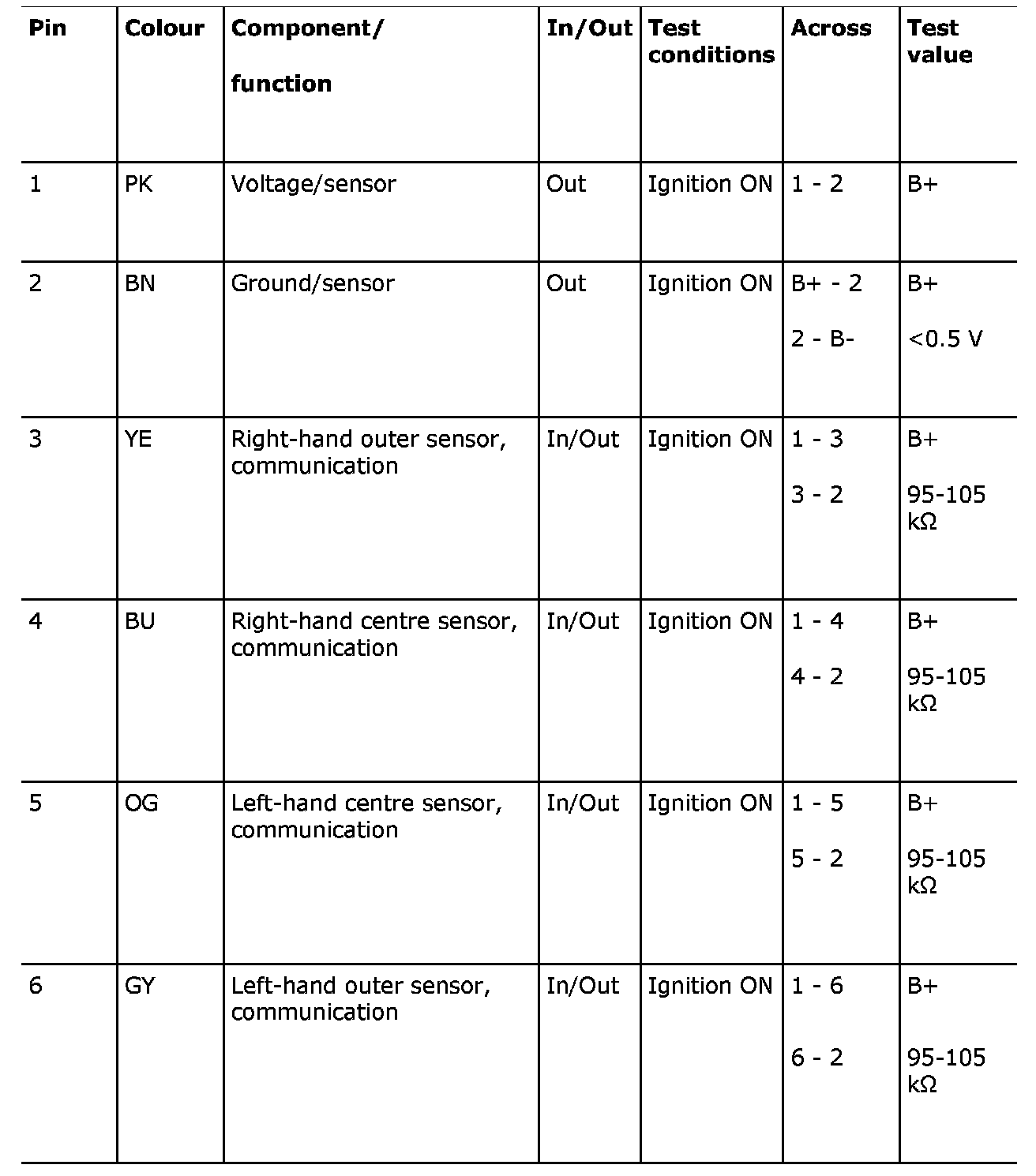 ^ If a test value is incorrect, consult the wiring diagram to trace which leads, connectors and components should be checked more thoroughly.