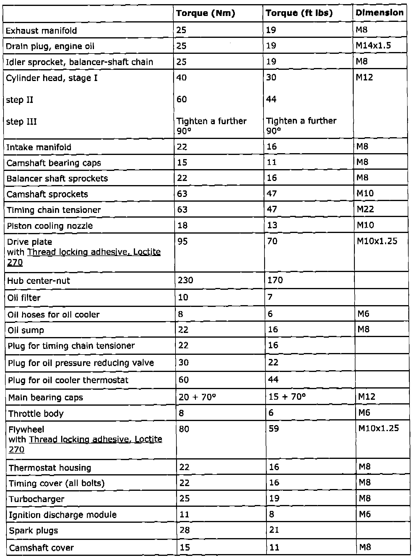 Torque Specifications
