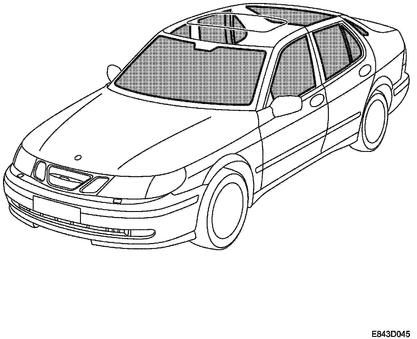 The rear side windows on the 5D Saab 9-5 are cemented to the body and incorporate antennas for the audio system.