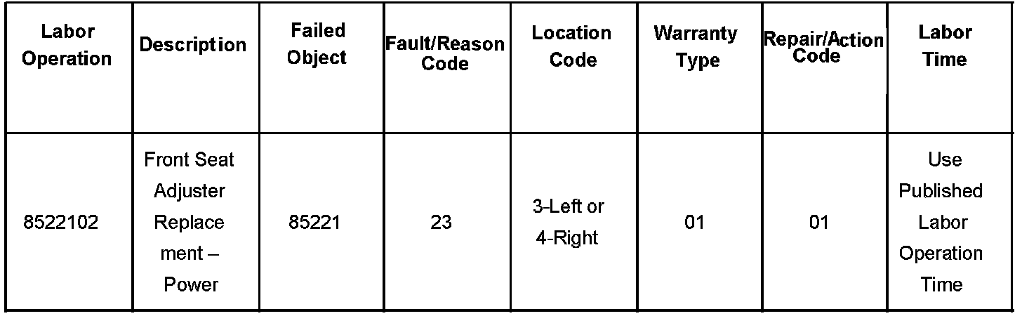 EI07207 - Driver and/or Passenger Power Seat Inoperative, Binding, Jammed or Noisy