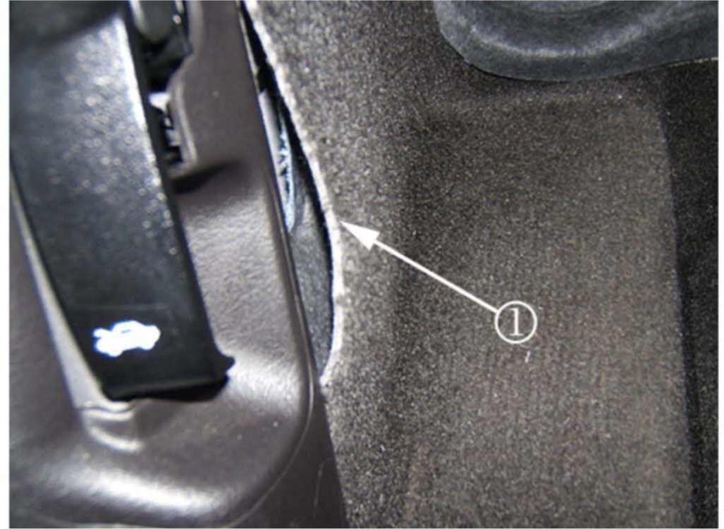 Some customers may comment that the front floor carpet (1) is loose around the driver's side floor next to the sill plate or foot rest.