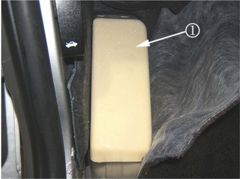 Cut a piece of deadener to 11 cm (43/8 in) width by 26 cm (10-1/2 in) length.