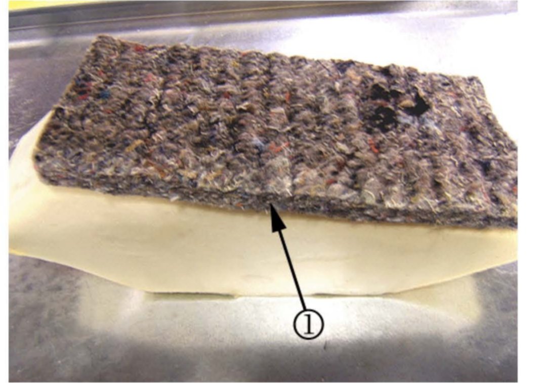 Attach the deadener to the top of the foam foot rest block with hot glue.