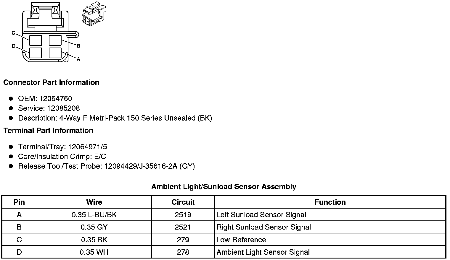 Ambient Light/Sunload Sensor Assembly