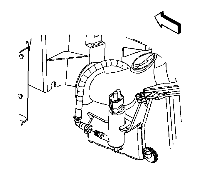 5. If applicable, disconnect the headlamp washer hose from the headlamp washer pump located on the lower air cleaner housing/washer solvent tank. Cap the headlamp washer pump outlet fitting to prevent loss of washer solvent.