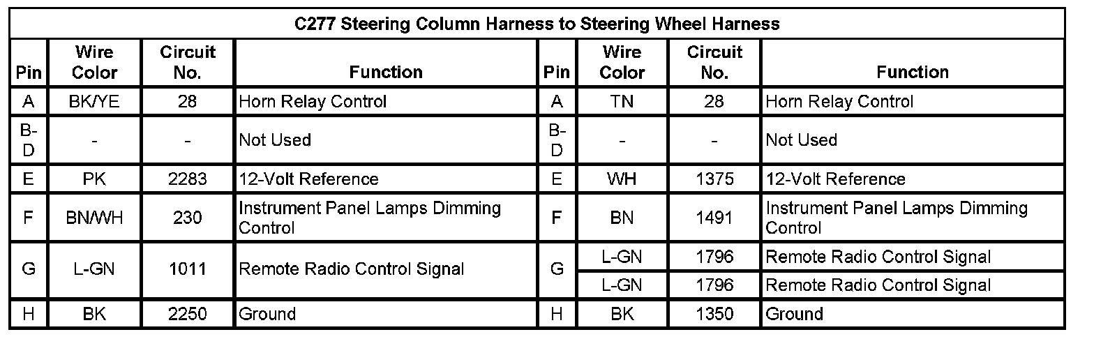 C277 Steering Column Harness to Steering Wheel Harness