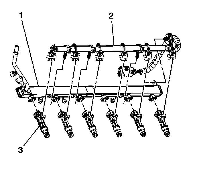 The fuel rail assembly (1) attaches to the cylinder head. The fuel rail assembly performs the following functions: