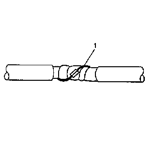 1. Remove the outer jacket (1). Use care not to cut into the drain wire of the mylar tape.