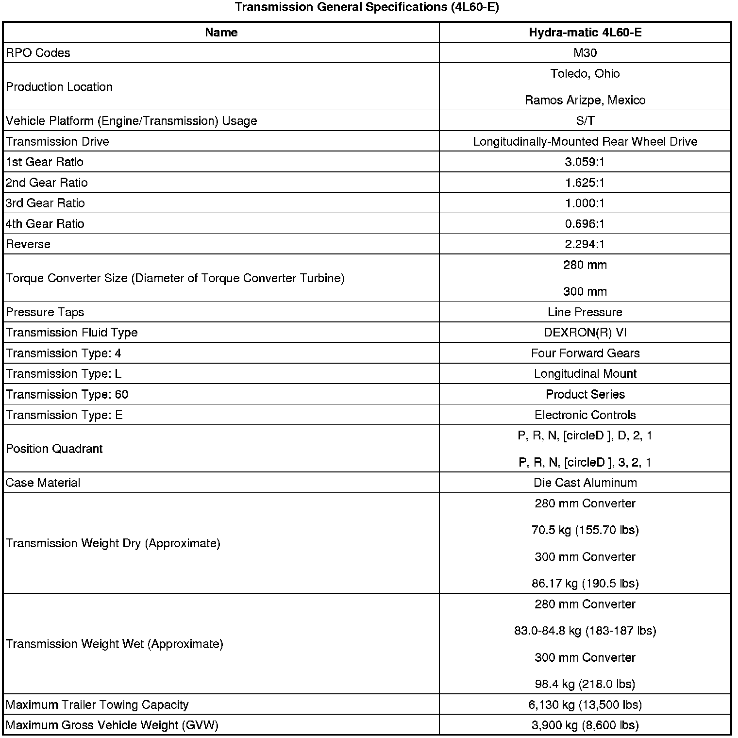 Transmission General Specifications