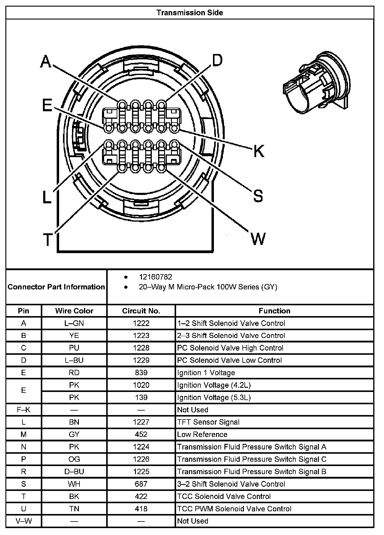 Automatic Transmission Inline 20-Way Connector End View Transmission Side