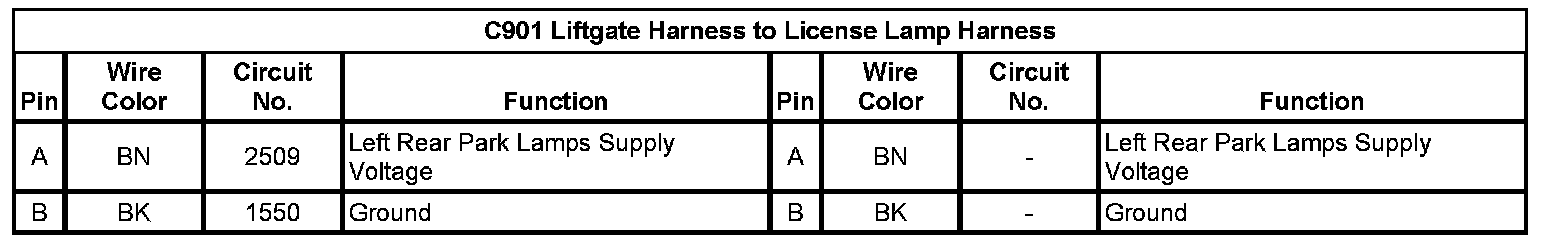 C901 Liftgate Harness to License Lamp Harness
