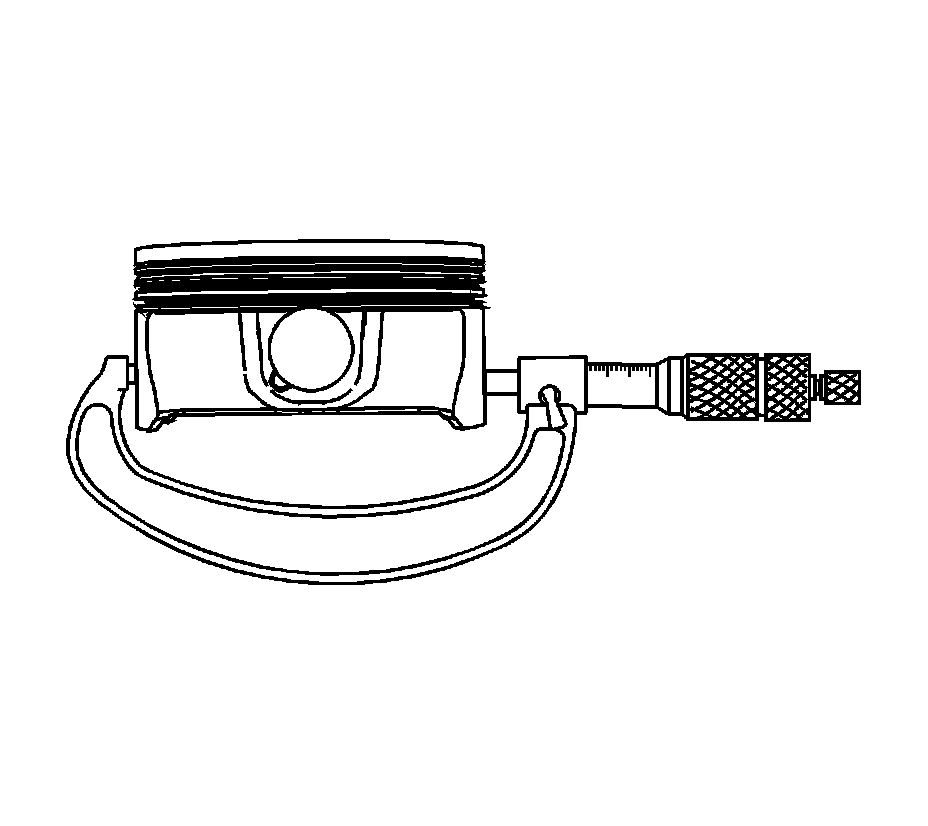 1. With a micrometer at a right angle, measure the piston outside diameter (OD). Measure the diameter 43 mm (1.69 in) from the top of the piston. Refer to Engine Mechanical Specifications (5.3L) (General Specifications)Engine Mechanical Specifications (6.0L) ().