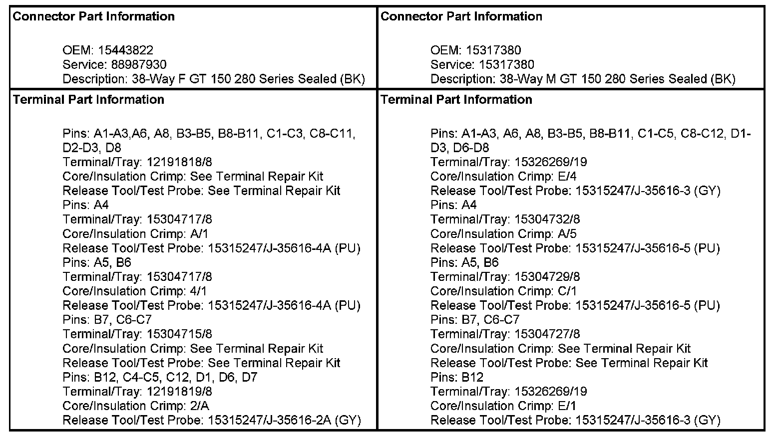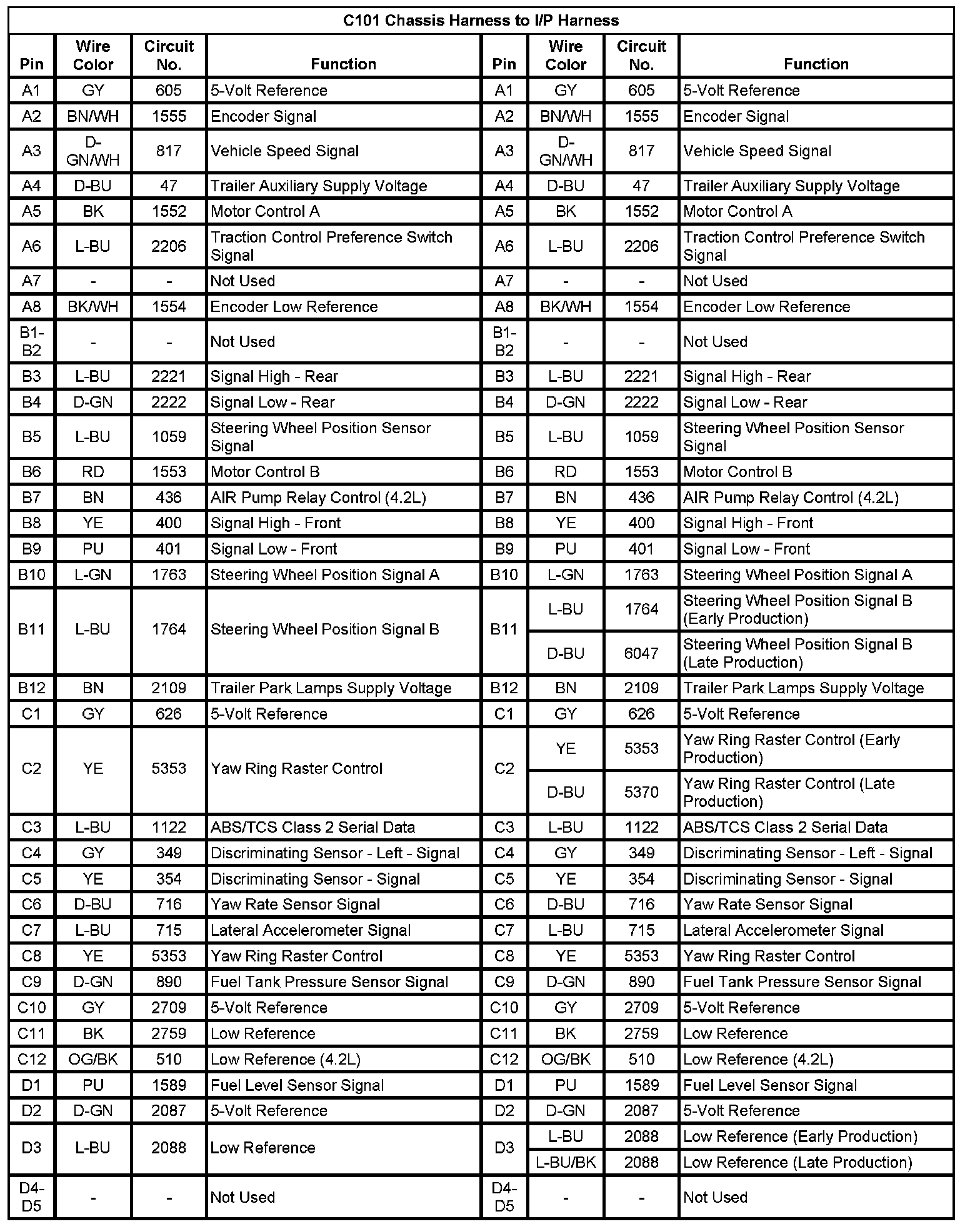 C101 Chassis Harness To I/P Harness (Pin A1 To D5):