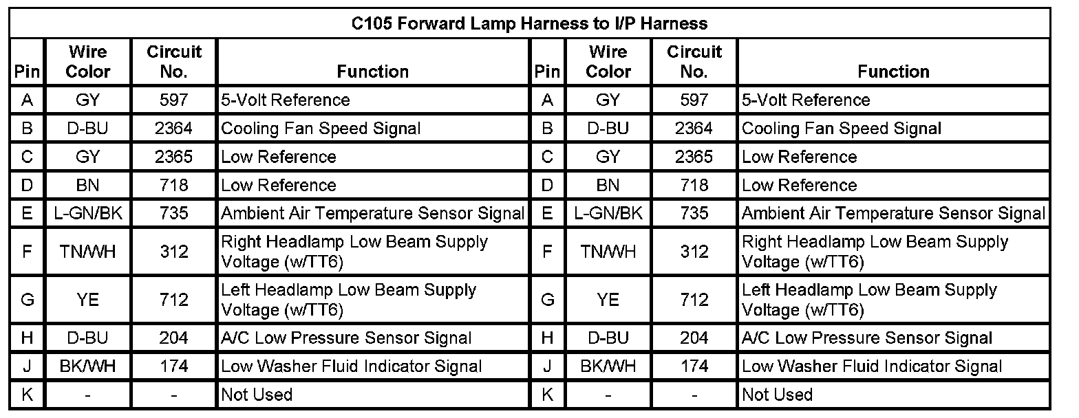 C105 Forward Lamp Harness to I/P Harness