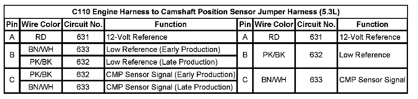 C110 Engine Harness to Camshaft Position Sensor Jumper Harness (5.3L)