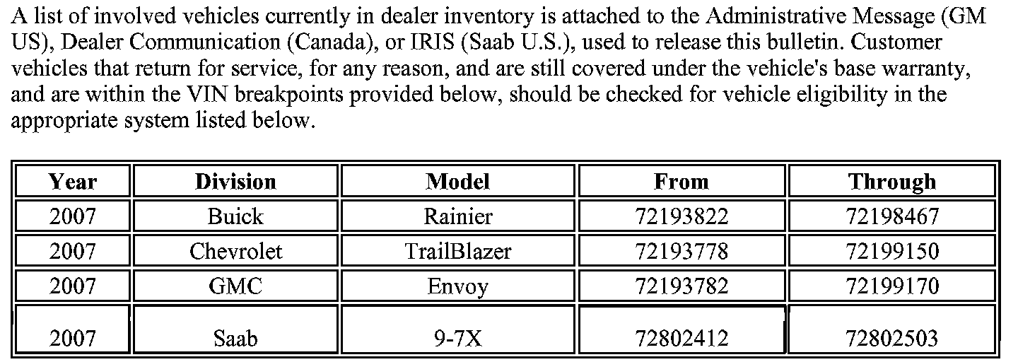 Dealers are to confirm vehicle eligibility prior to beginning repairs by using the system(s) below. Not all vehicles within the above breakpoints may be involved.
