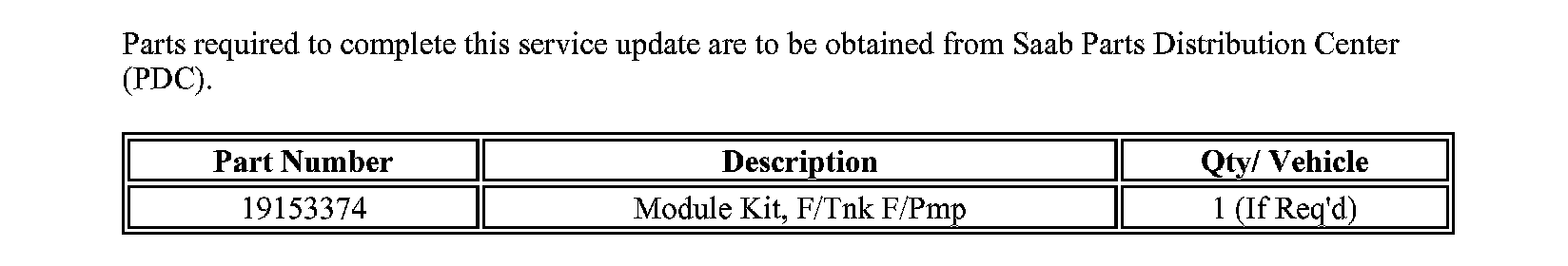 Parts required to complete this service update are to be obtained from General Motors Service Parts Operations (GMSPO). Please refer to your "involved vehicles listing" before ordering parts. Normal orders should be placed on a DRO = Daily Replenishment Order. In an emergency situation, parts should be ordered on a CSO = Customer Special Order.