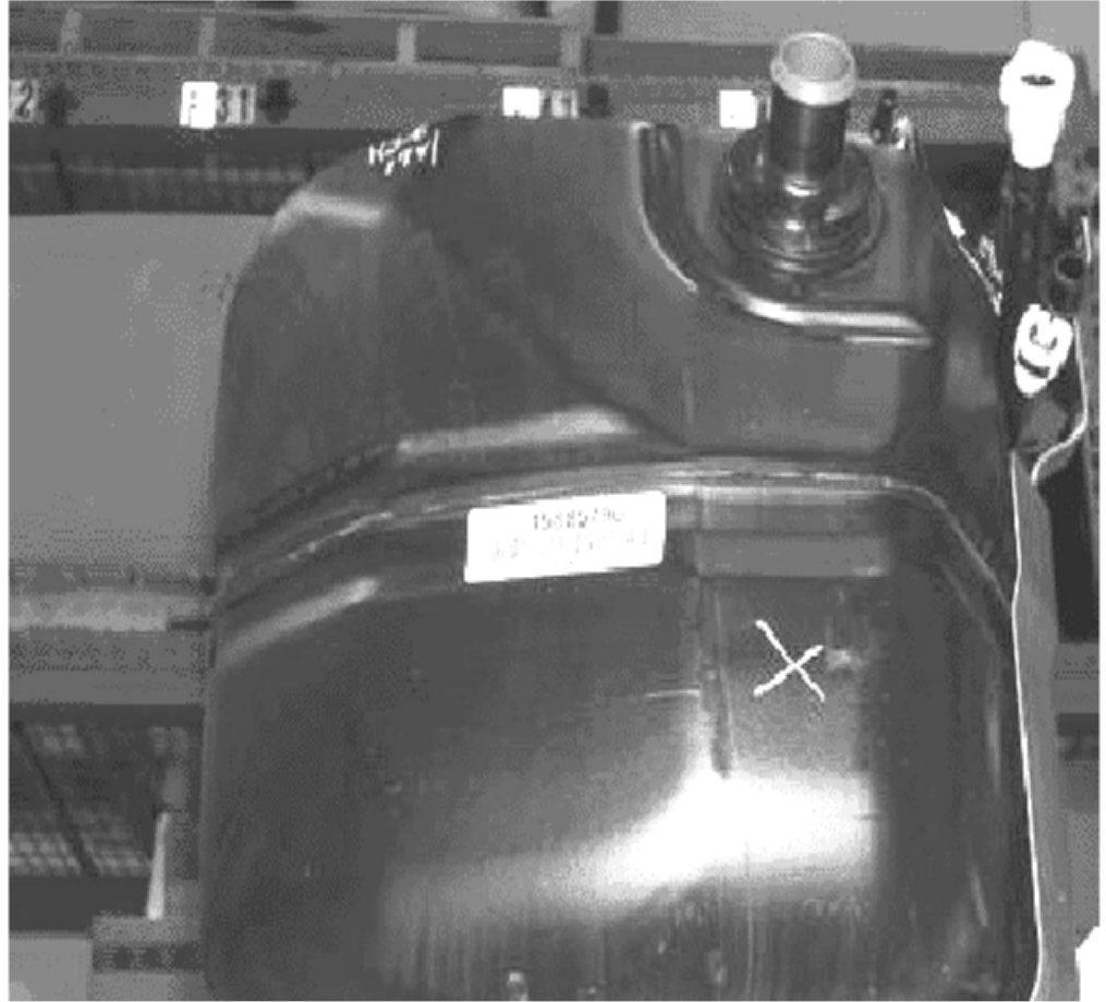 3. Inspect the fuel tank for a white "X" on the fuel tank and/or a green "C" on the barcode.