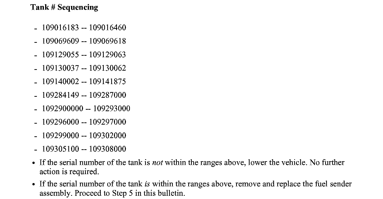 Campaign - Possible Fuel Sending Unit Port Fracture