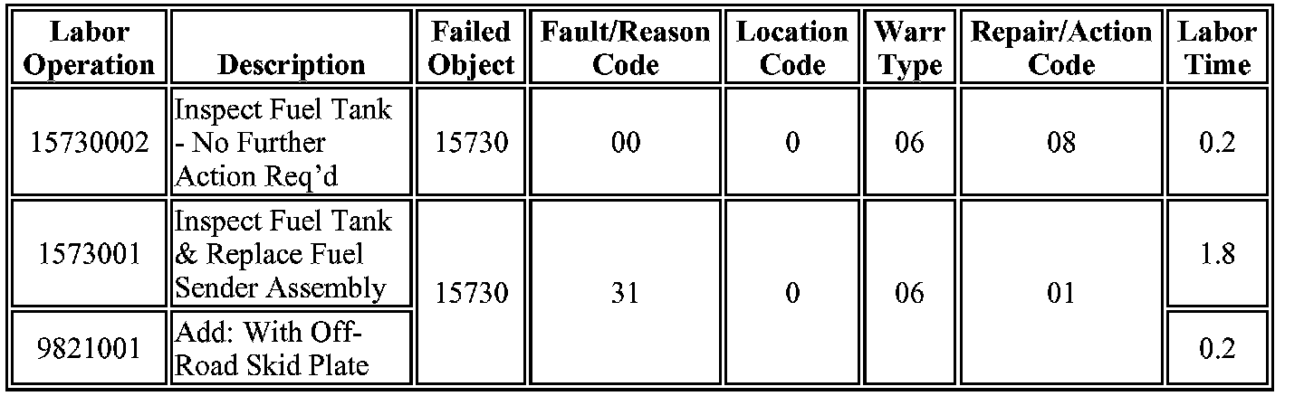 ^ If a white "X" on the fuel tank and/or a green "C" on the barcode is found, the fuel sender assembly does not require replacement. No further action is required.