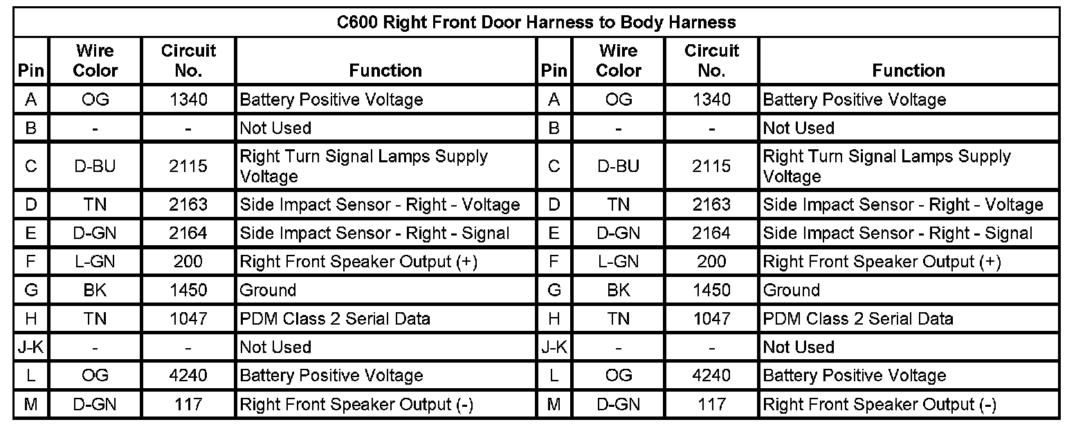 C600 Right Front Door Harness to Body Harness