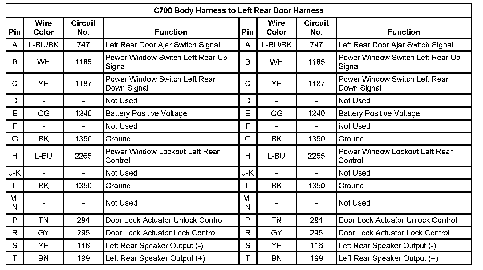 C700 Body Harness to Left Rear Door Harness