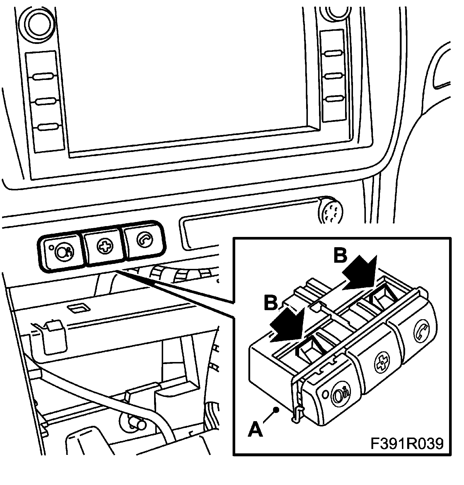 2. Fit the OnStar panel (A), press in the catches (B) and guide out the panel.