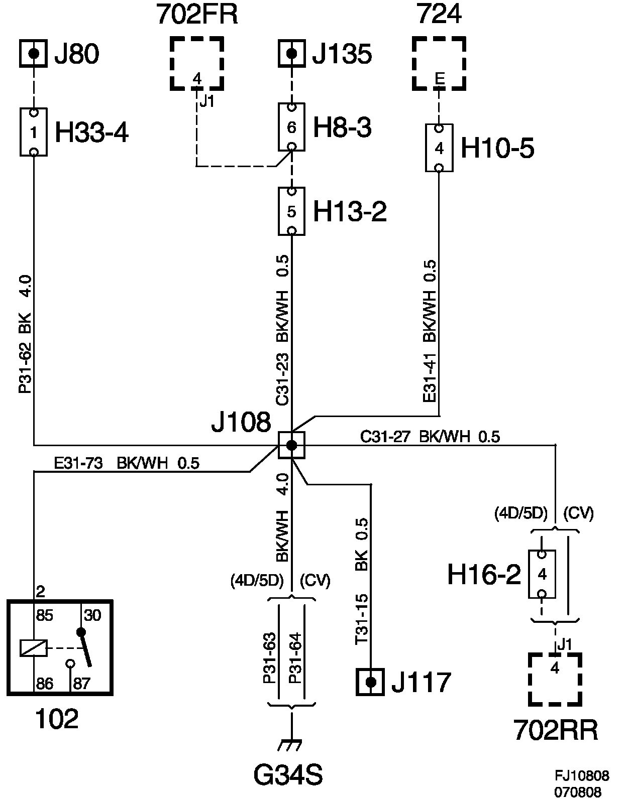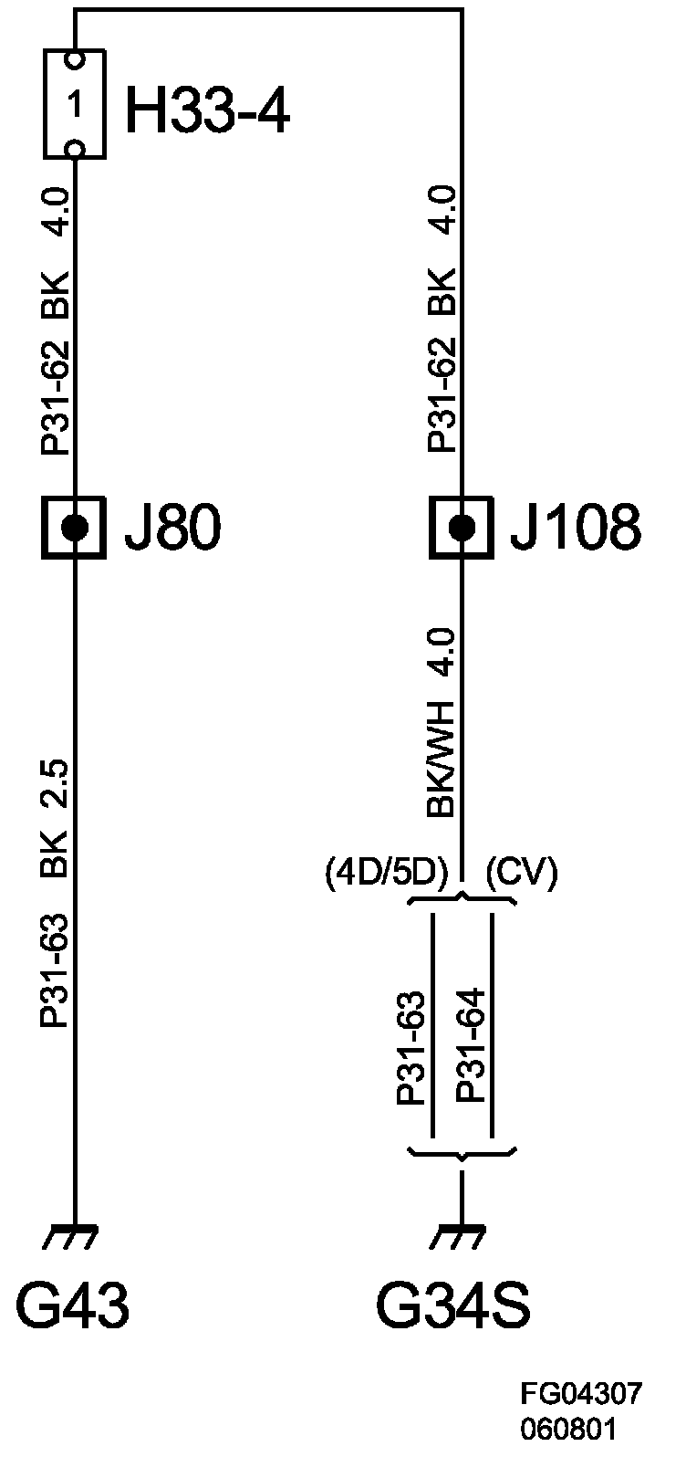The grounding point is connected to the G43 grounding point via crimp connectors J108 and J80.