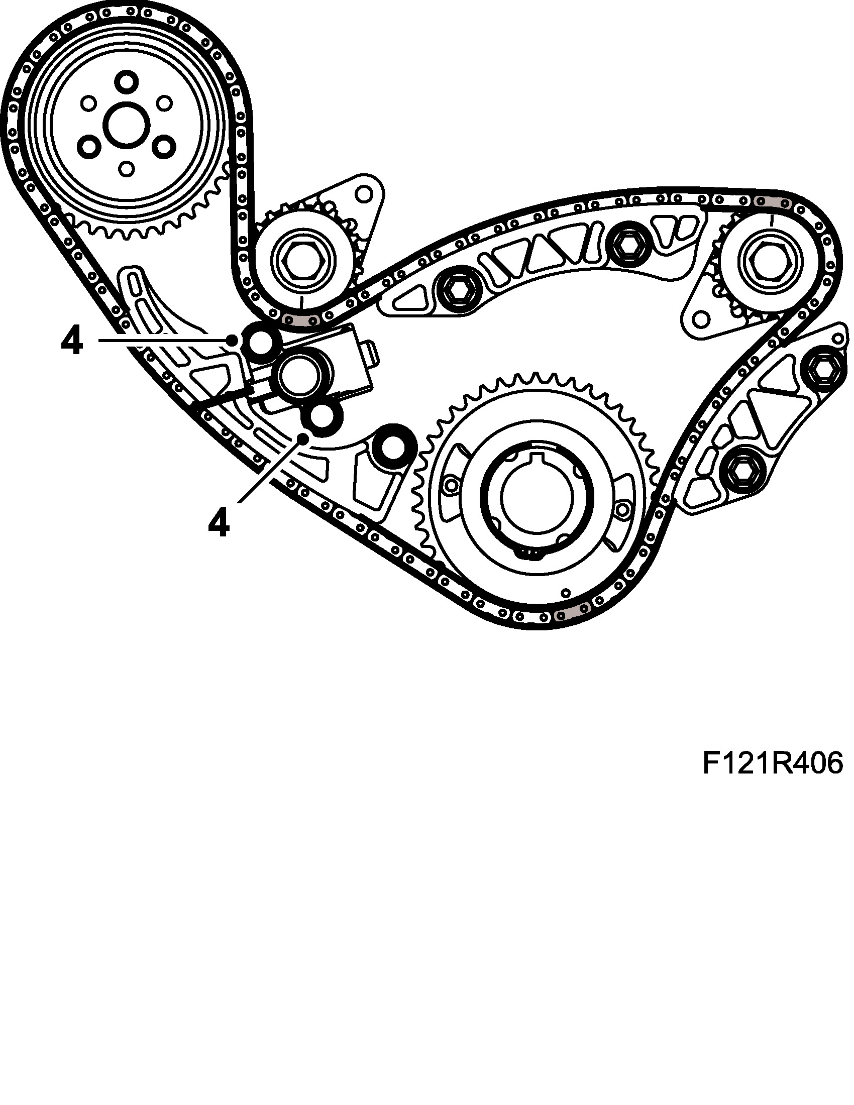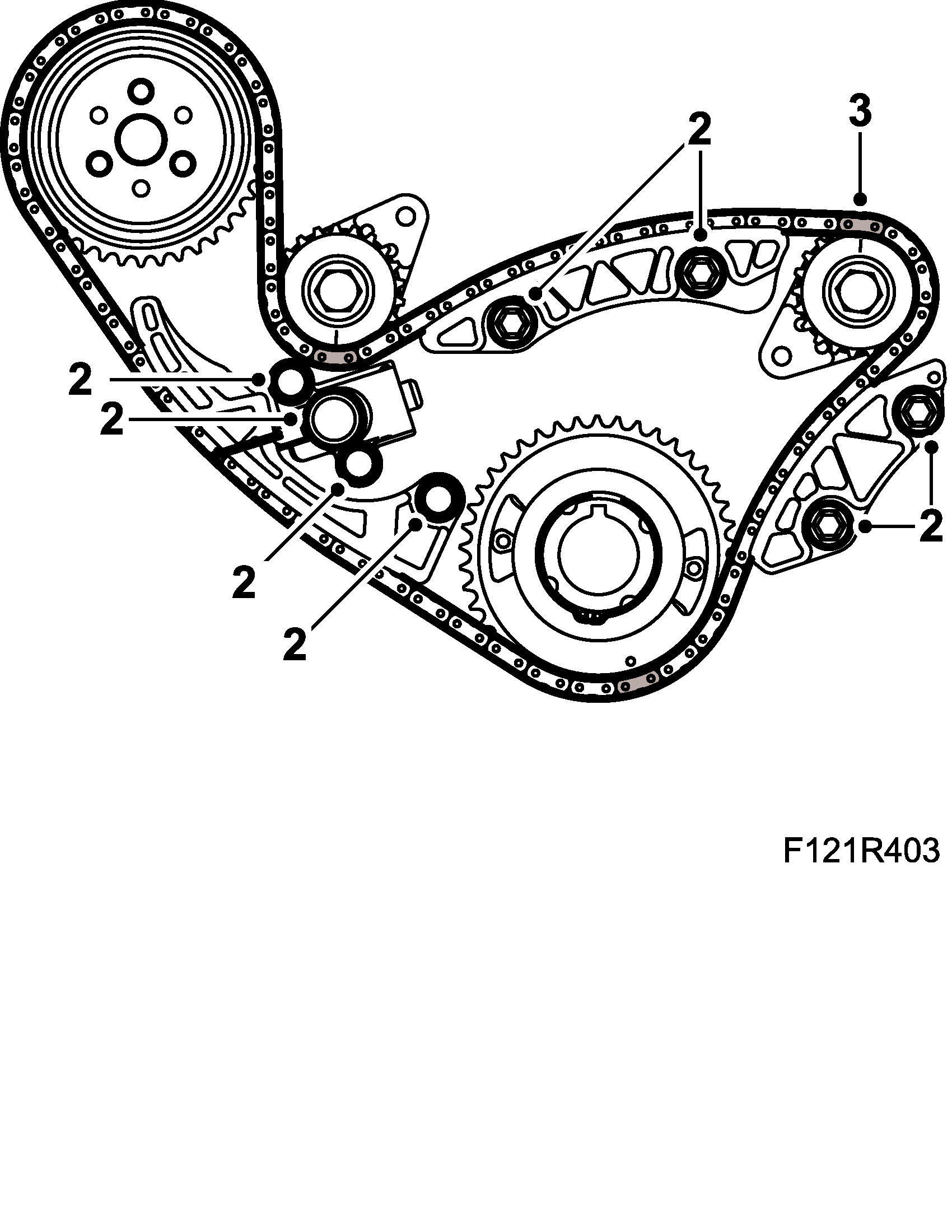 1. Fit the chain. Start fitting on the water pump pinion. Continue as follows: