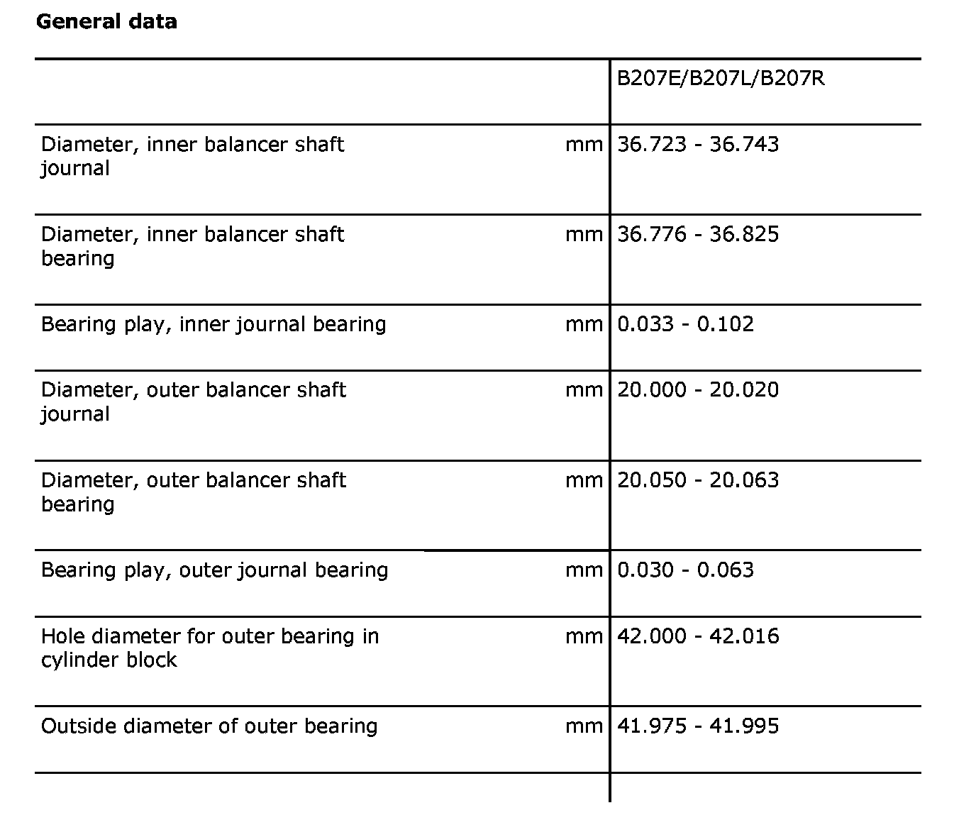 Balance Shaft: Specifications