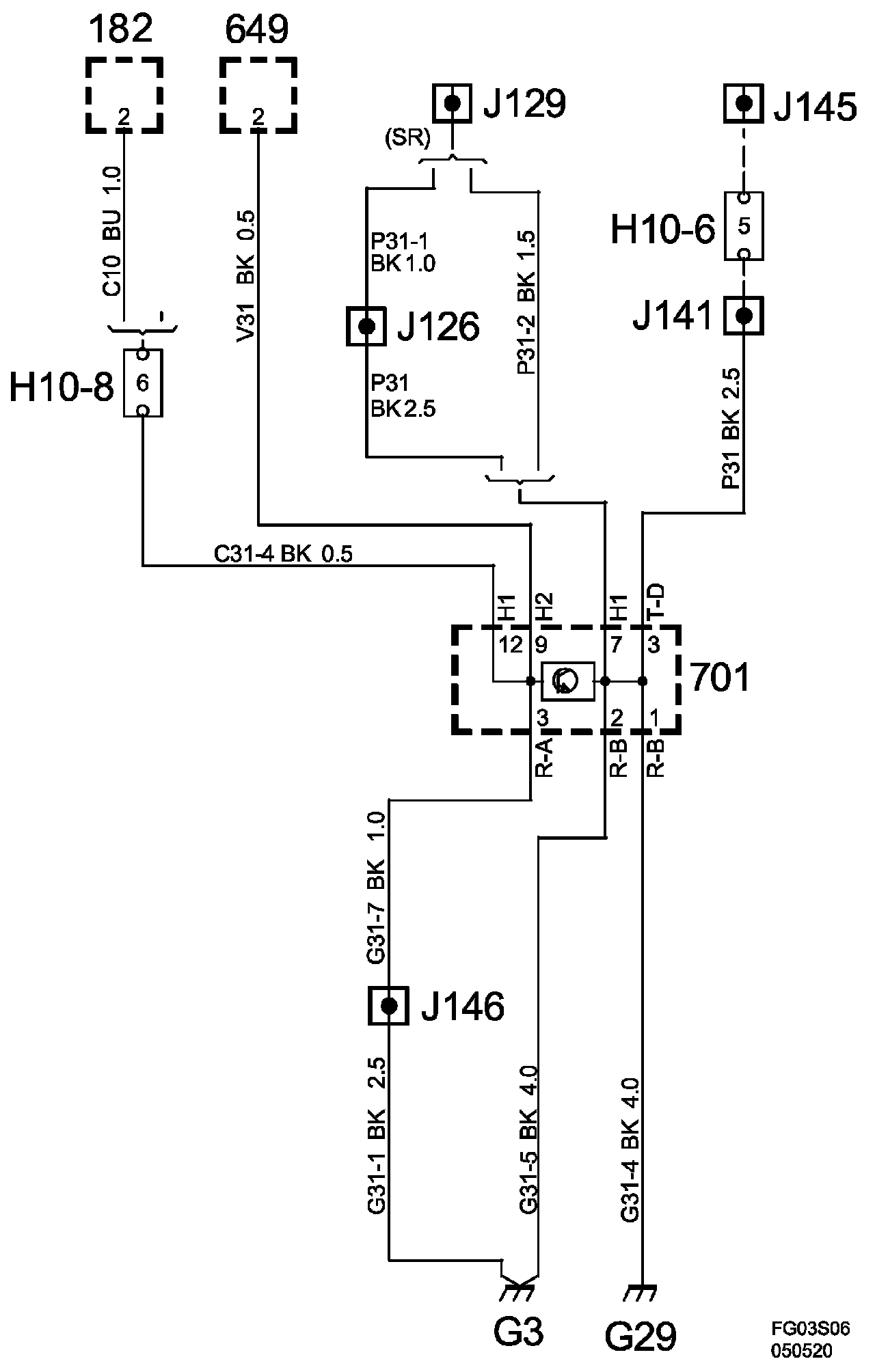 The grounding point is connected with grounding point G29 via the boot electrical center 701.
