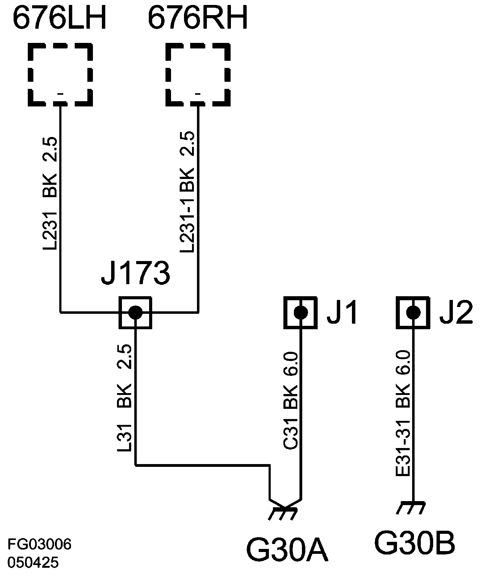 The grounding point is connected with grounding point G30A via crimp J2, underhood electrical center 342 and crimp J1.