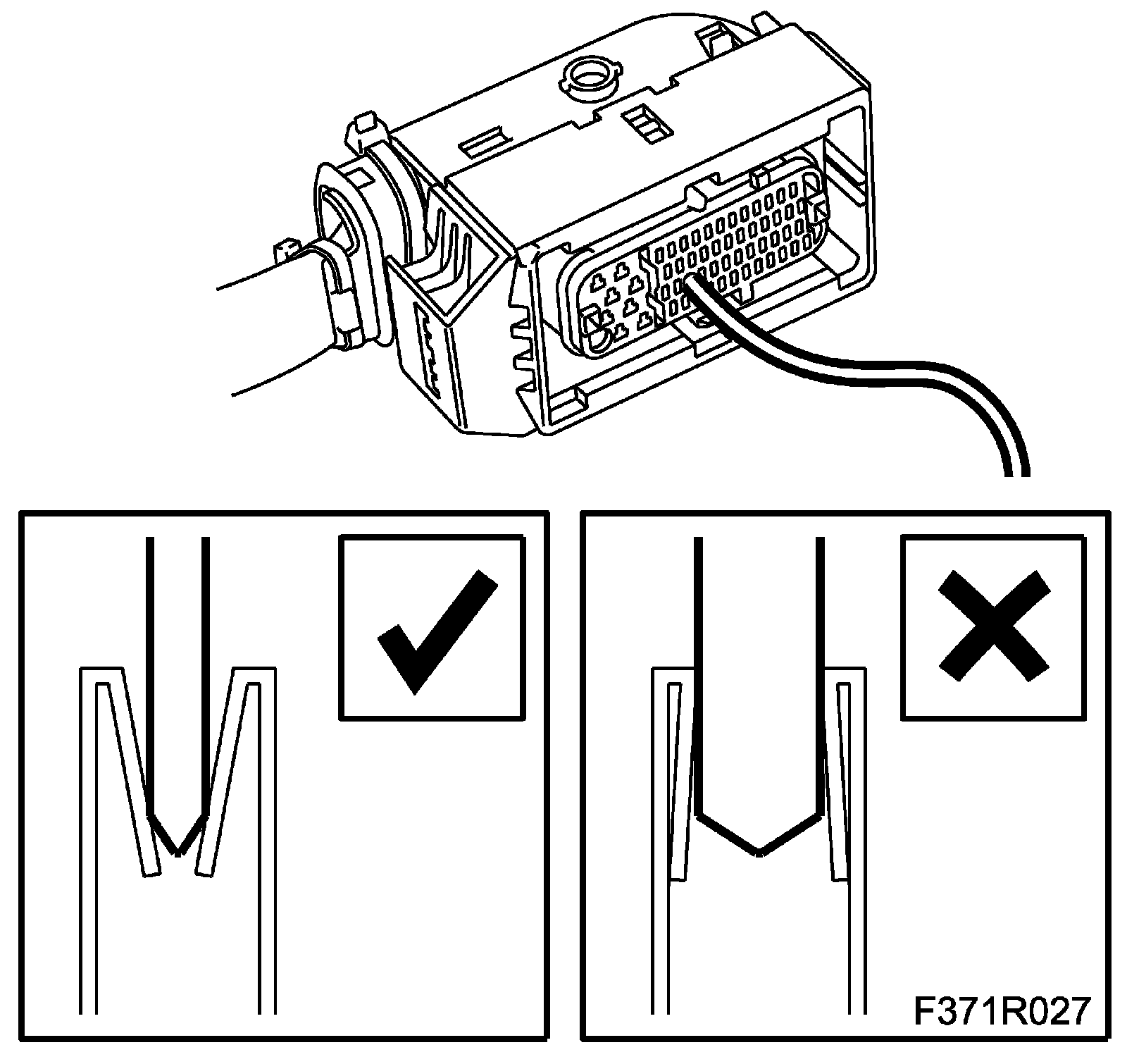 3. To check the connector clamping force, use a test cable with the right pin size (from kit 86 12 731).