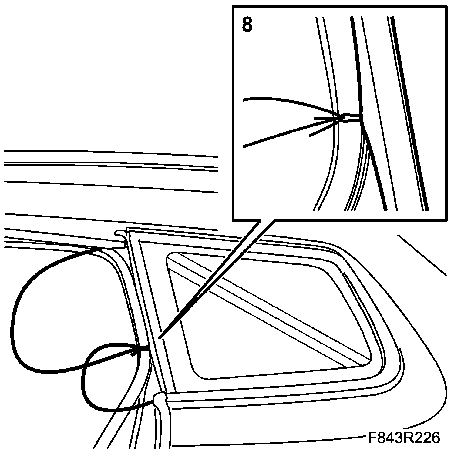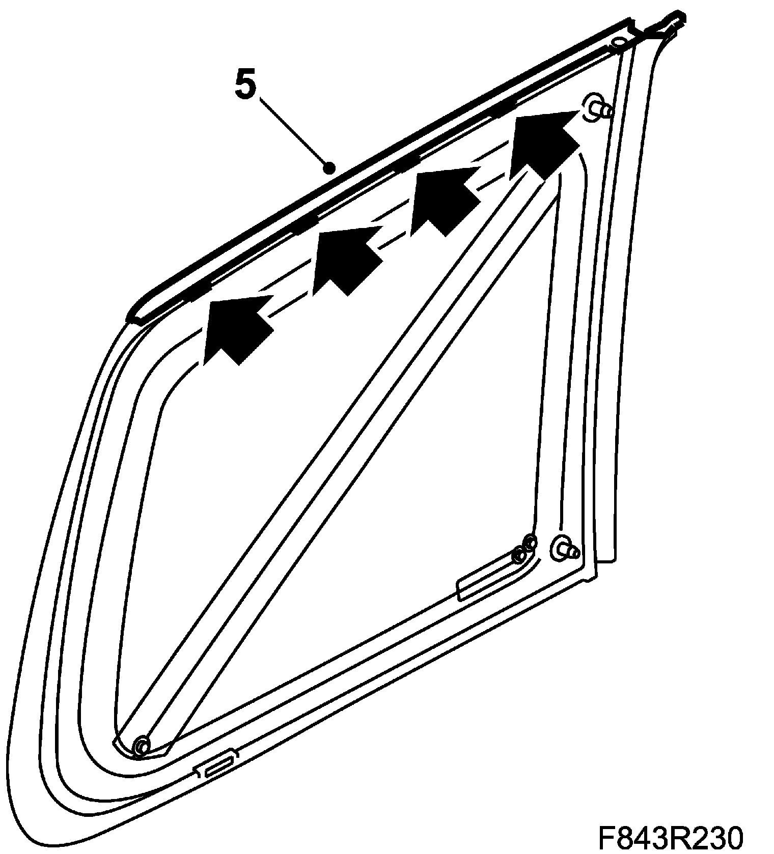 NOTE: If the side window is to be held in place with adhesive tape after fitting, make sure the side window/side panel is washed before starting to glue the window.